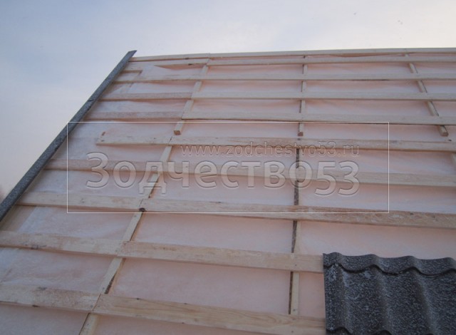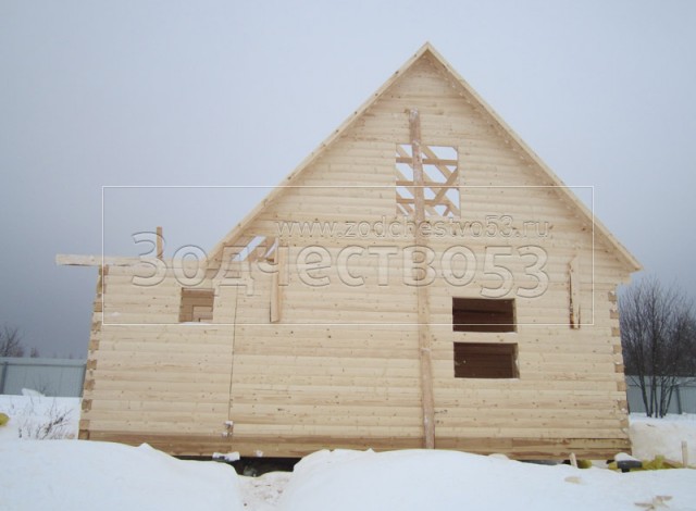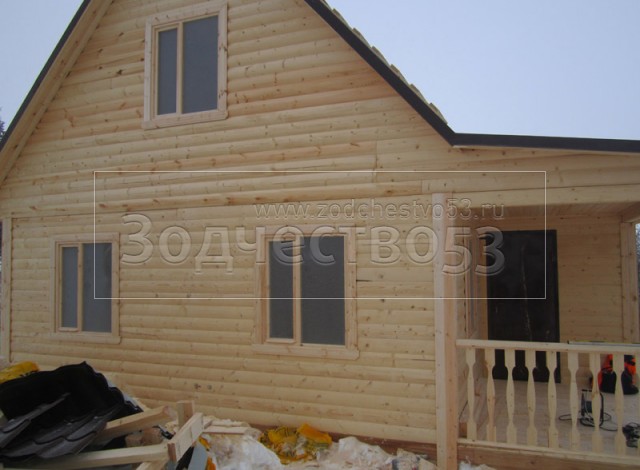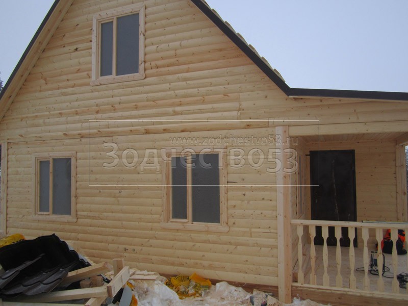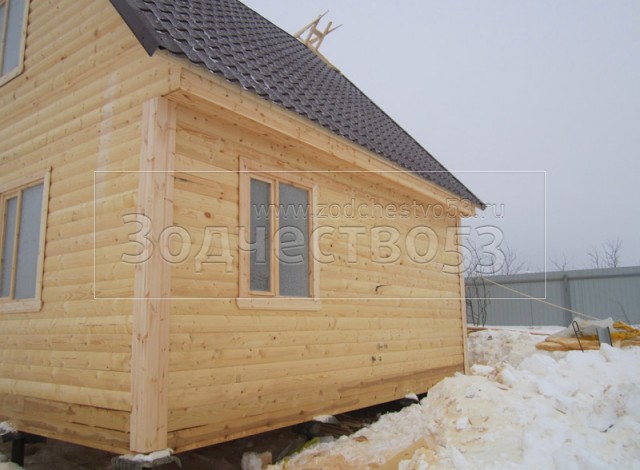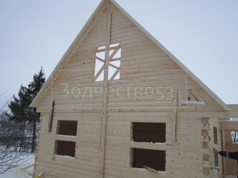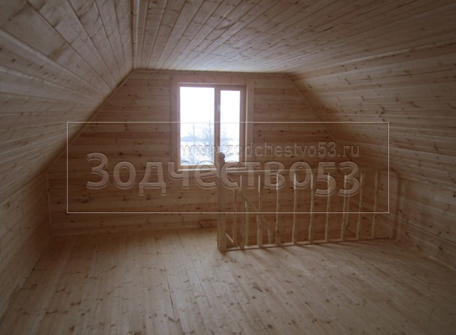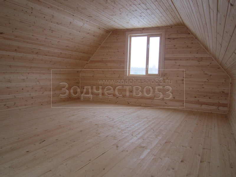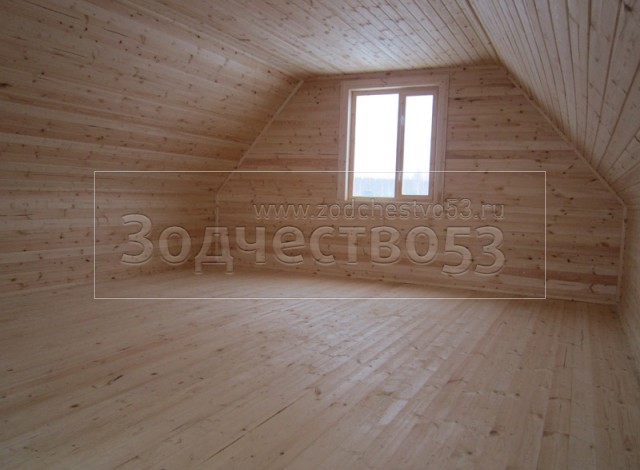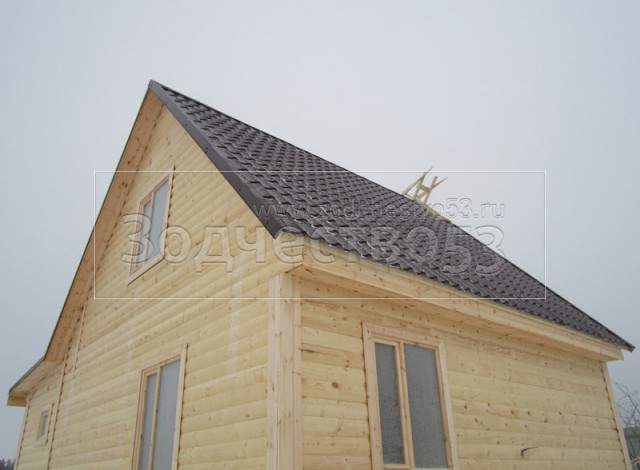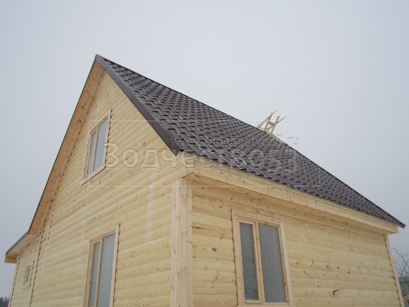 - Каркасно-щитовые фронтоны, высотой 3 метра, обшиты блок хаусом.