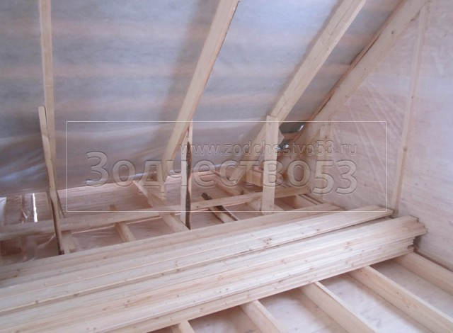 Потолки подшиты вагонкой класс В с проложкой парогидроизоляции