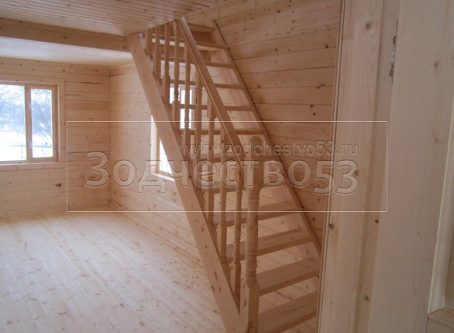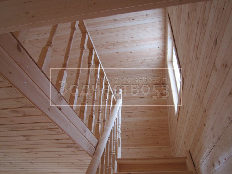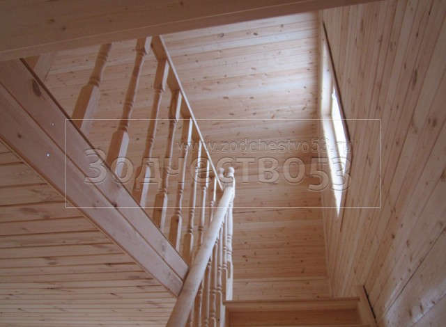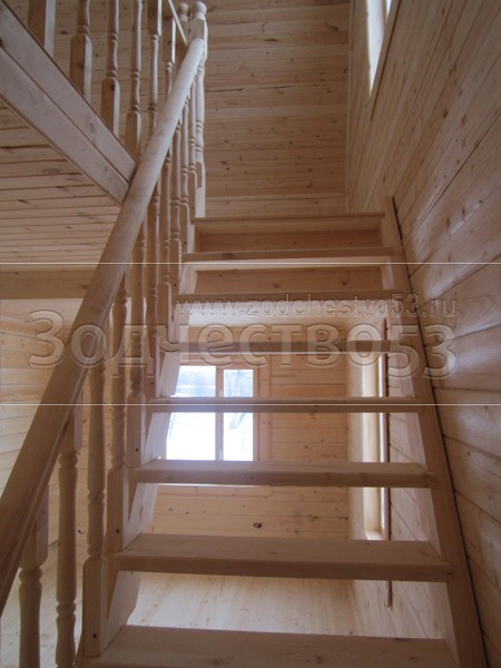 Лестница: одномаршевая с точёными балясинами ,стартовыми столбами и перилами