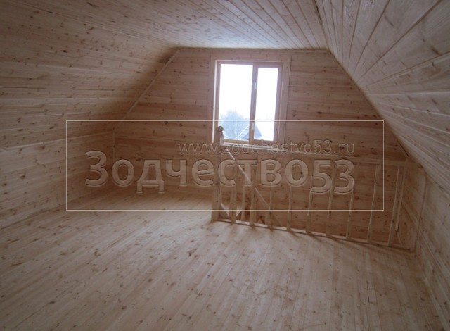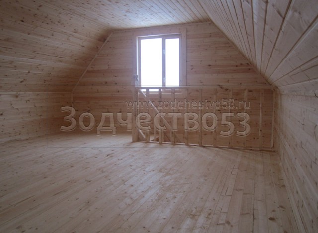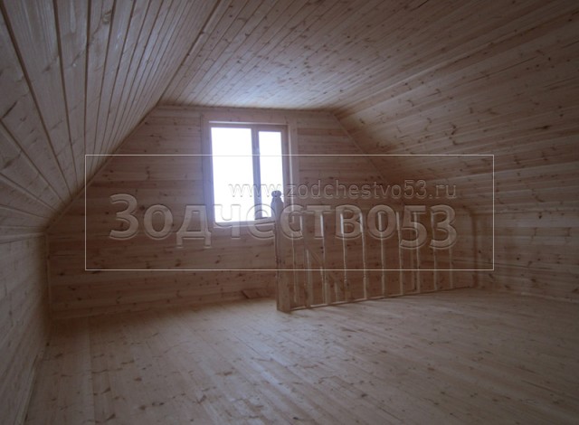 Мансардный этаж:высотой 2.2 размерами 4.5×6.0 каркасно -щитовой ,обшитый вагонкой класс В с утеплением в 100мм с проложкой парогидроизоляции класс В