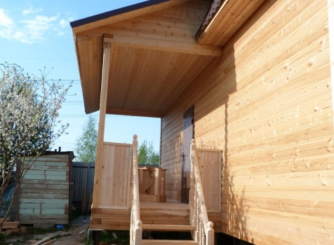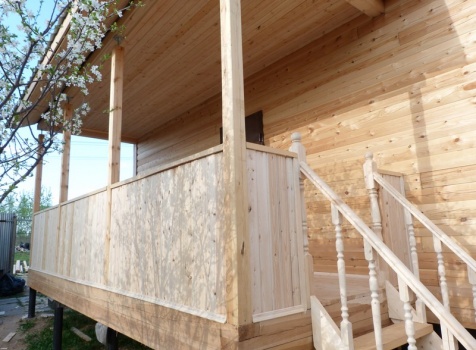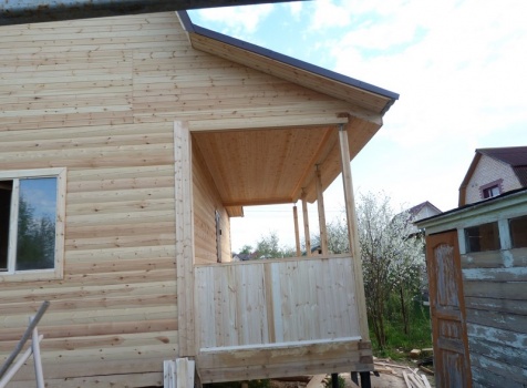 • Крыльцо: 2.0×6.0 открытое с двух сторон на высоту 1 м. зашивается вагонкой, без утепления под отдельной крышей.