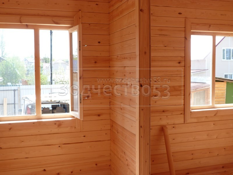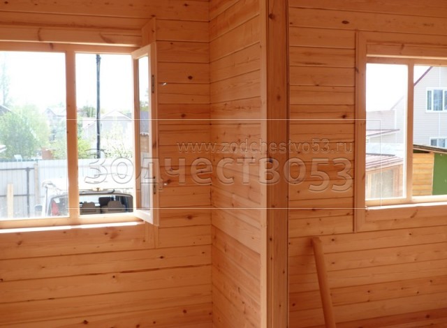- Окна: 8 шт. — деревянные, имитация стеклопакетов с фурнитурой.