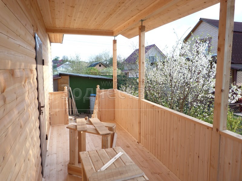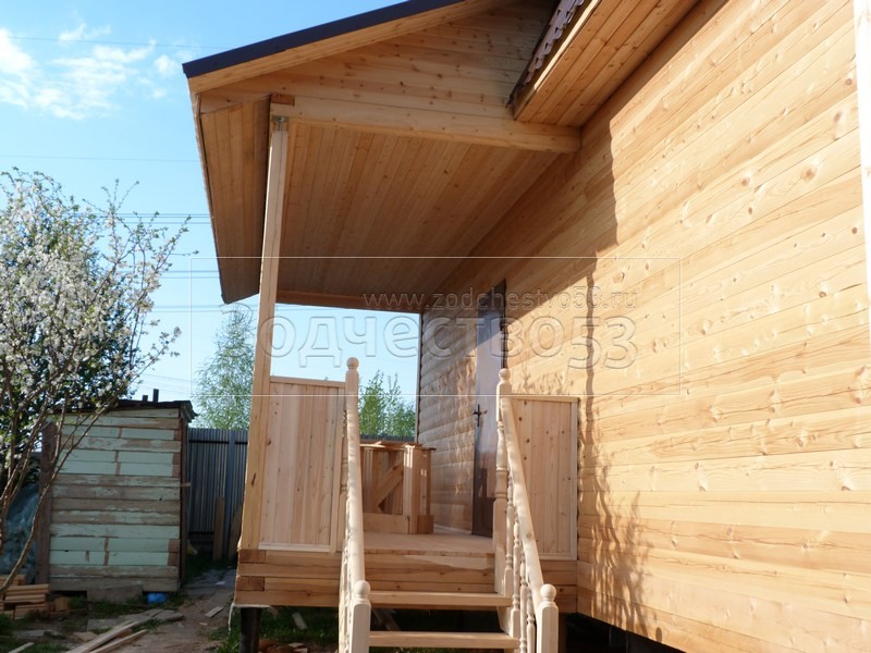 - Крыльцо: 2.0×6.0 открытое с двух сторон на высоту 1 м. зашивается вагонкой, без утепления под отдельной крышей.