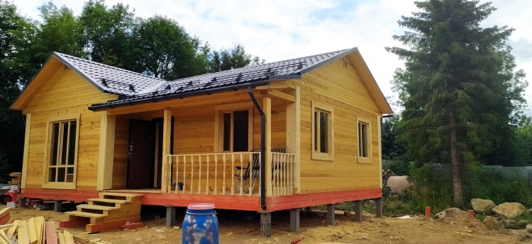 На строительства дома общими размерами 7.20×10.0 ( 7.20×4.50 и 6.0×5.50 с 3- мя фронтонами под двухскатной крышей из профилированного бруса (Камерной сушки) и терраса 1.20×5.50 под отдельной односкатной крышей.