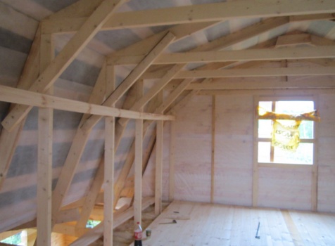 Стены второго этажа каркасно щитовые с утеплением 100 мм.