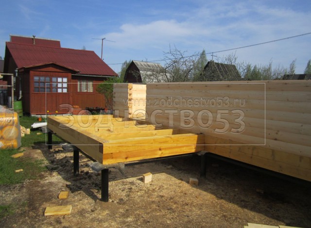 - Обработка огнебиозащитой двойной обвязки, лаг и черновых полов.
