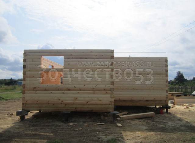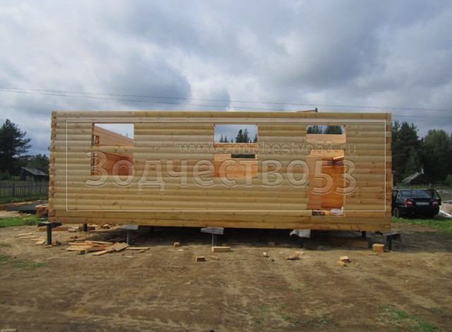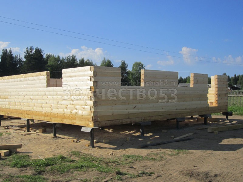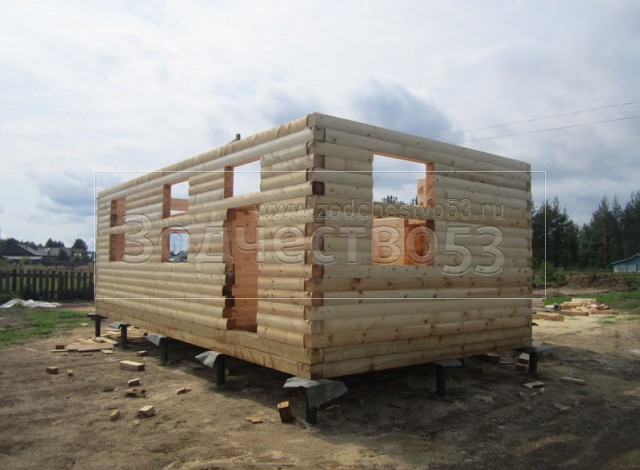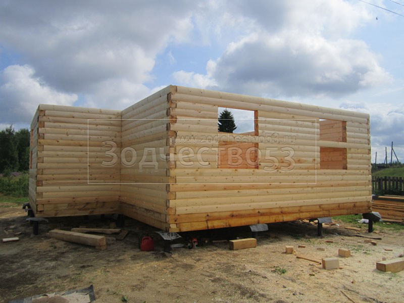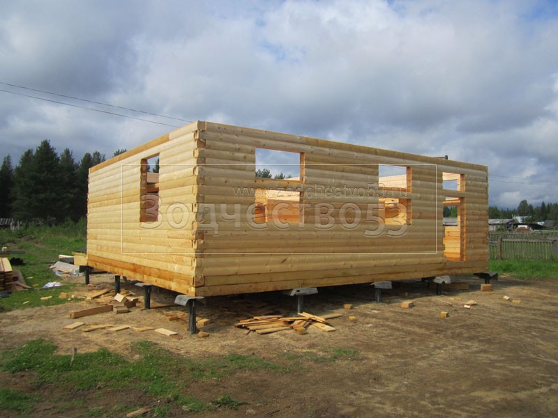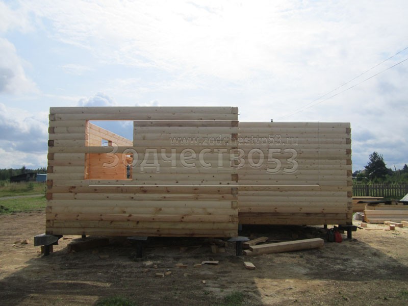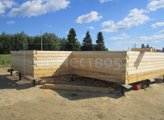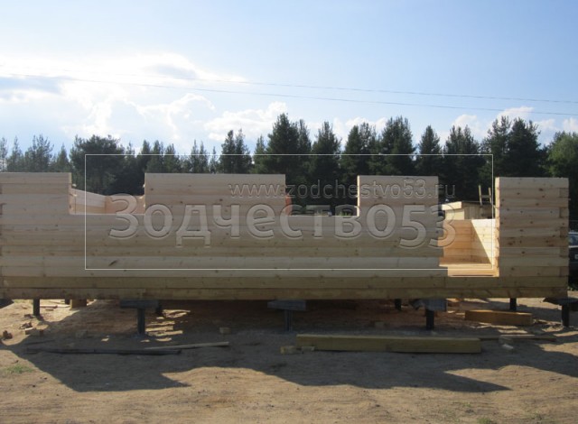 - Стены первого этажа из профилированного бруса 150×150 (полукруг) высотой