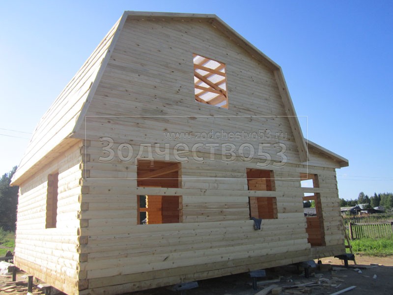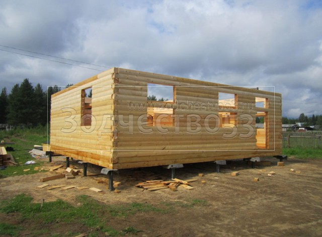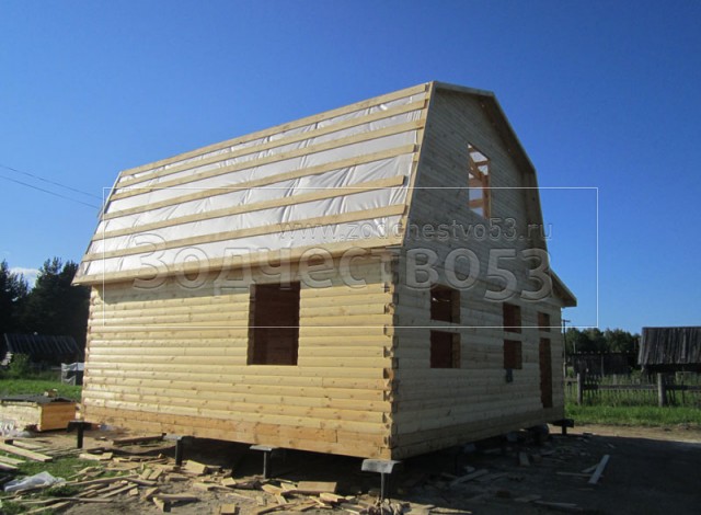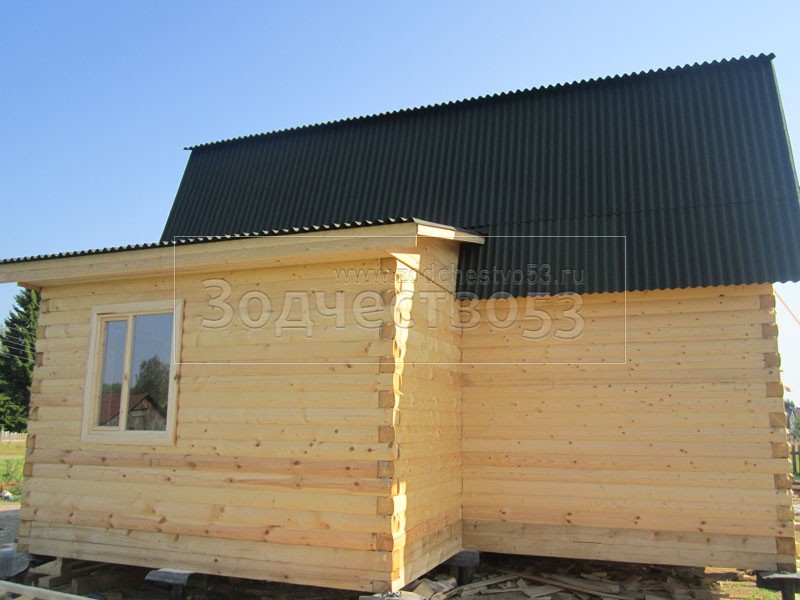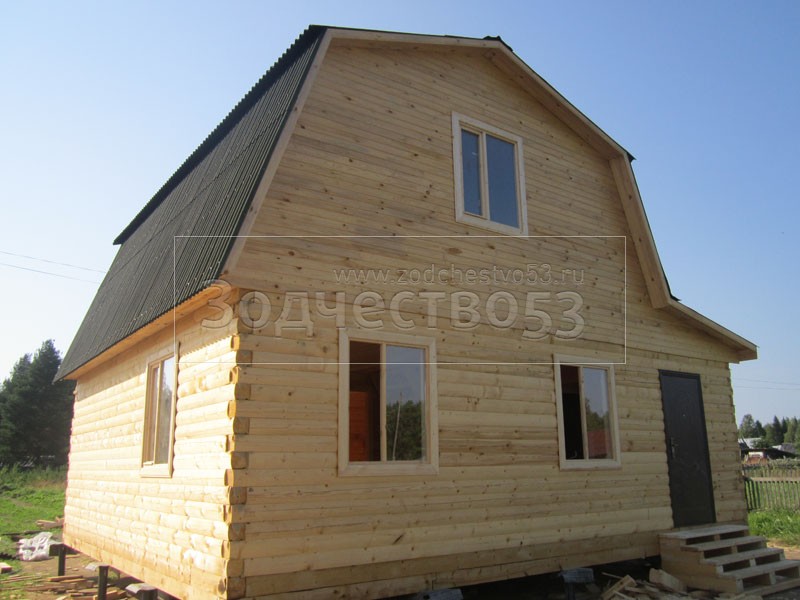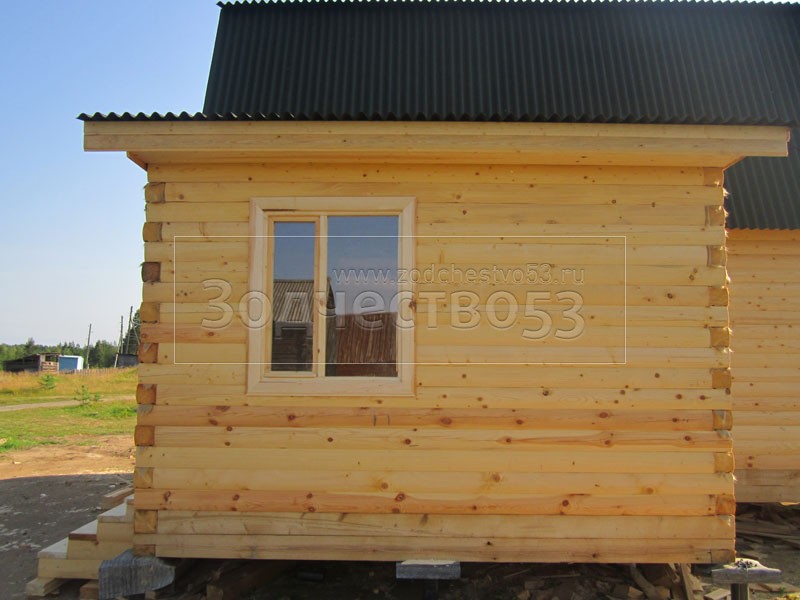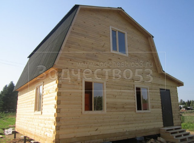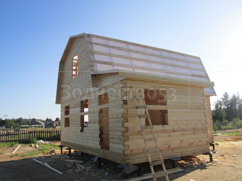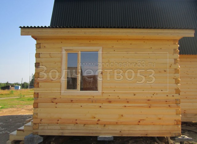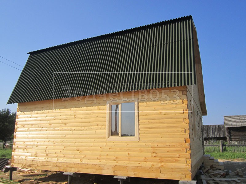 Дом 7×8 из профилированного бруса 150×150 по проекту Д-44 (6*7 под ломанной крышей и 2*4 веранда из бруса 150*150 под отдельной крышей). Построен в республике Карелия, Беломорский район, п. Летнереченский.
