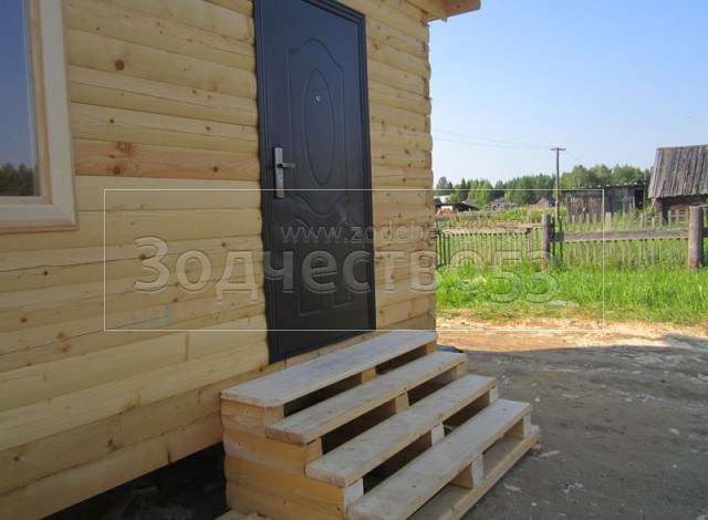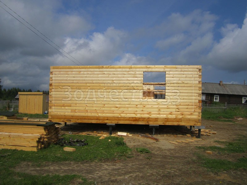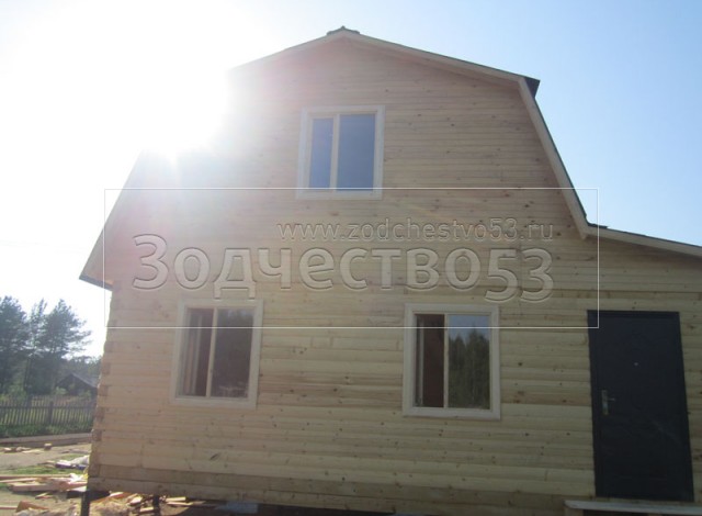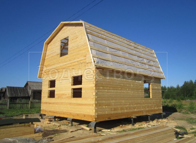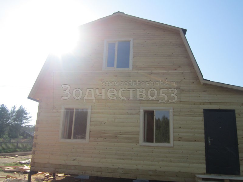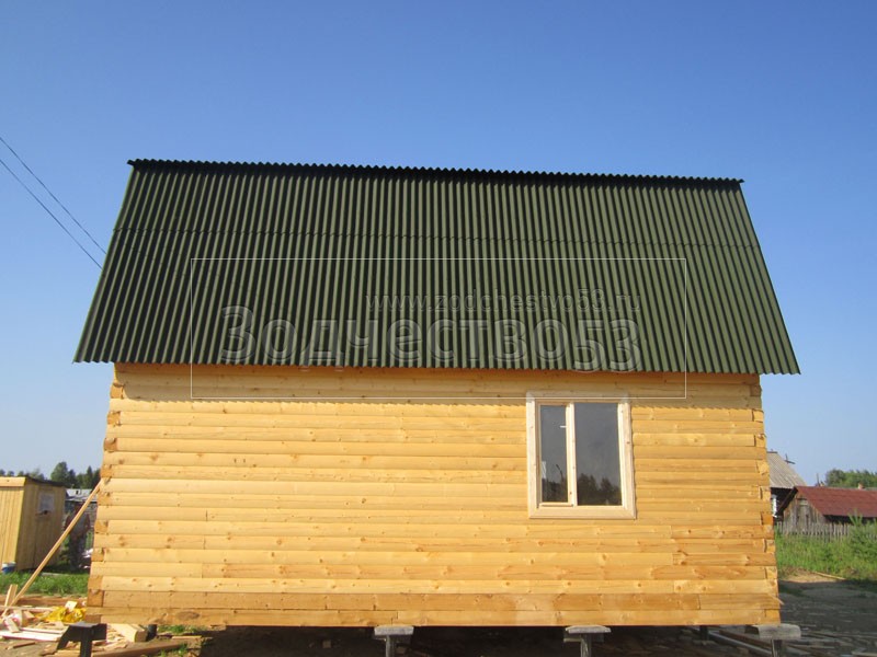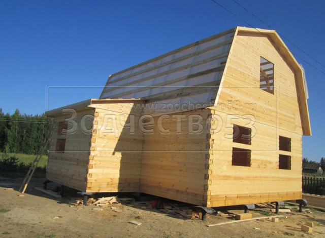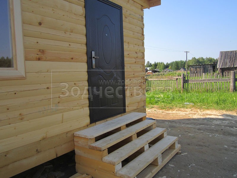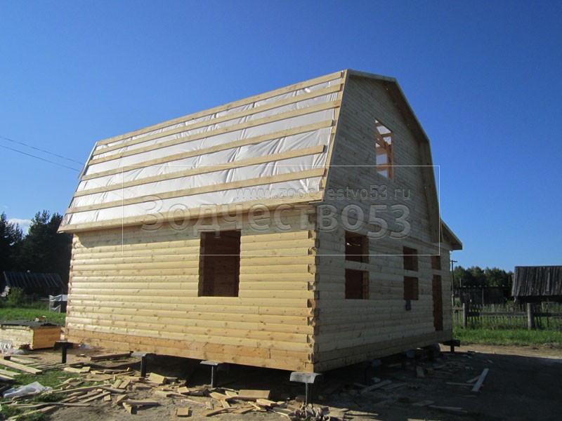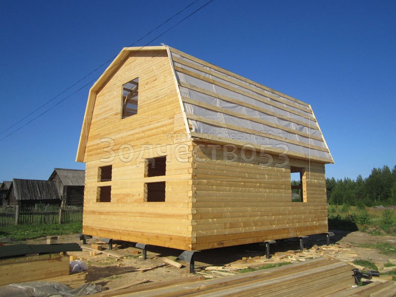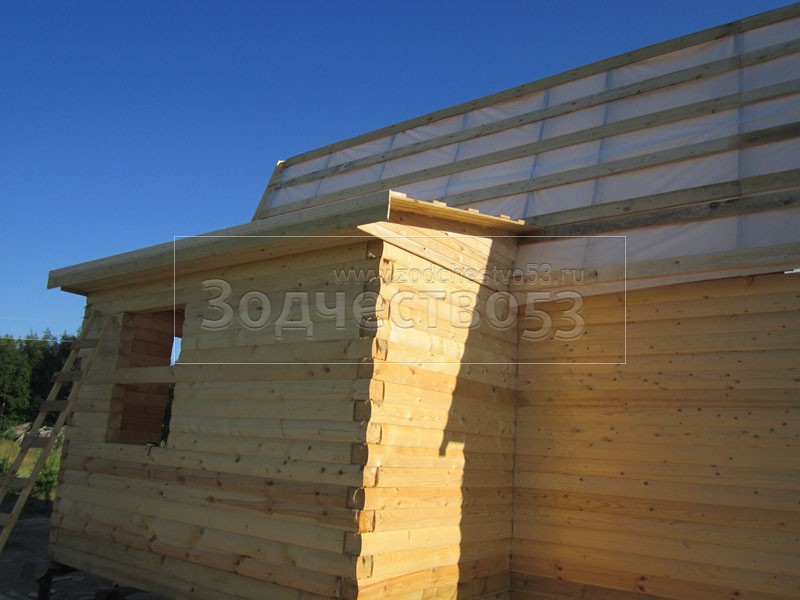 Дом 7×8 из профилированного бруса 150×150 по проекту Д-44 (6*7 под ломанной крышей и 2*4 веранда из бруса 150*150 под отдельной крышей). Построен в республике Карелия, Беломорский район, п. Летнереченский.