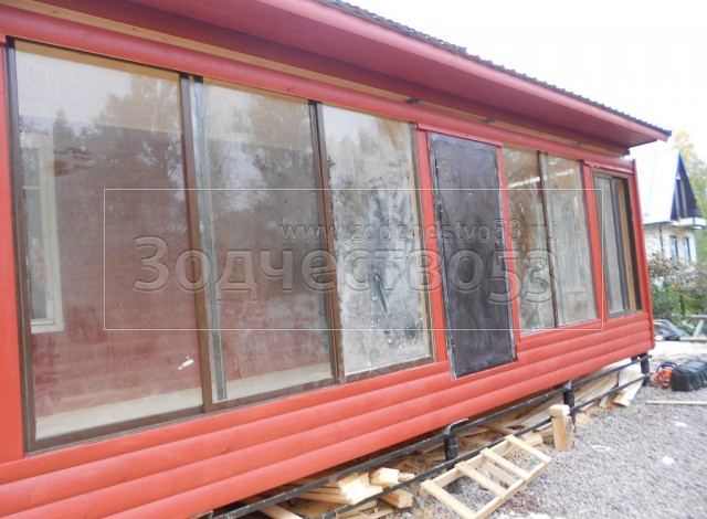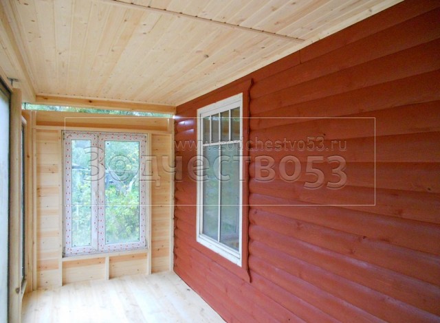 - веранда 2,0×9,0 закрытая, обшита блок-хаусом, установлены усадочные болты