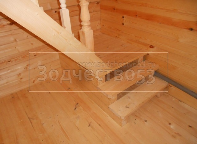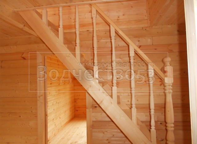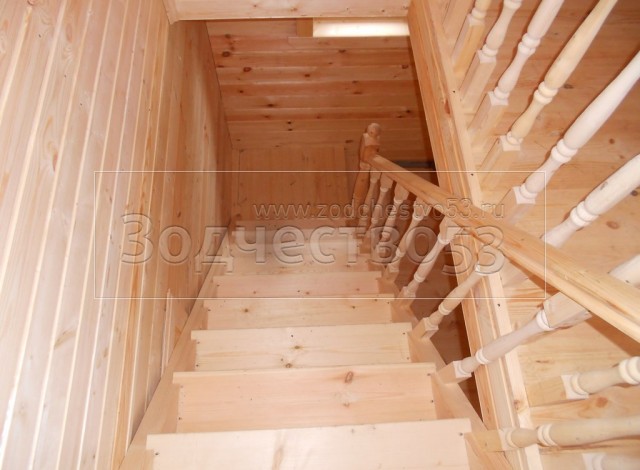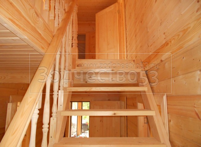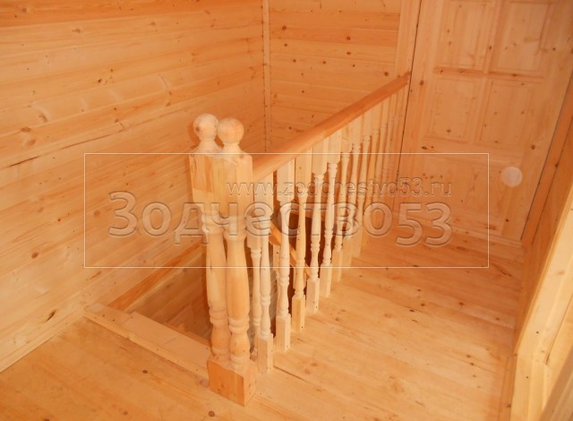 - лестница двухмаршевая с точеными балясинами, стартовыми столбами и перилами
