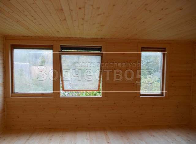 - фронтоны каркасно-щитовые, обшиты блок-хаусом