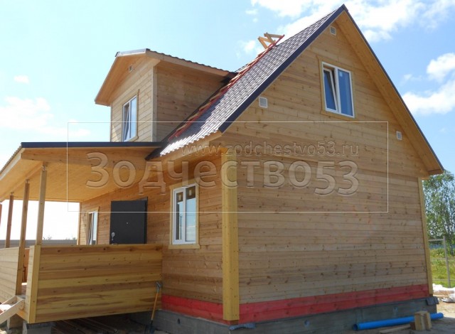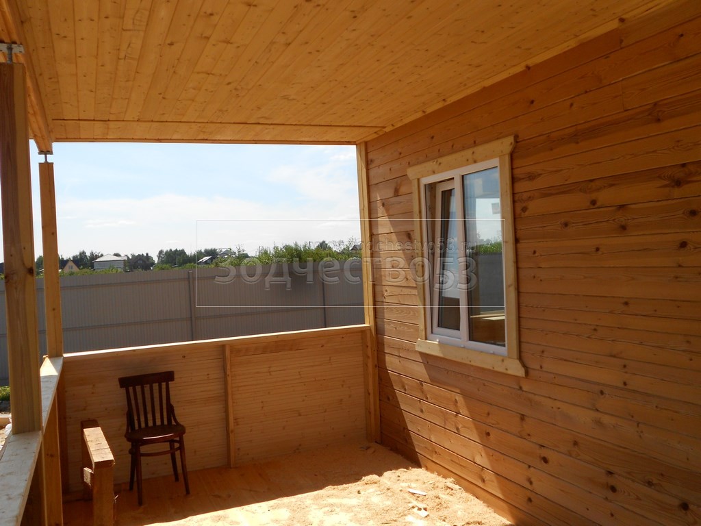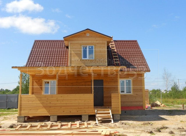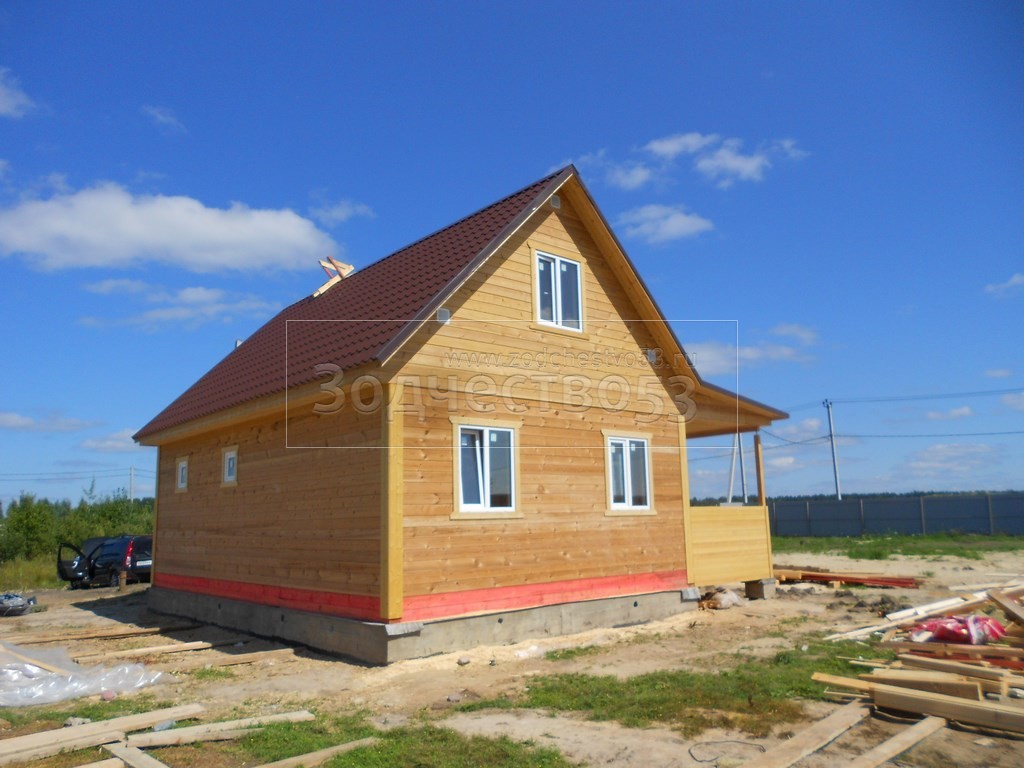 Дом общими размерами 8,5×9,0 (6,0×9,0 из профилированного бруса 150×150 и 2,5×6,5 открытая терраса) построен в Московской обл., Ногинский р-н, у д. Следово