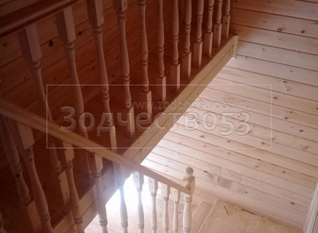 - Лестница:двухмаршевая с точёными балясинами,стартовыми столбами и перилами.