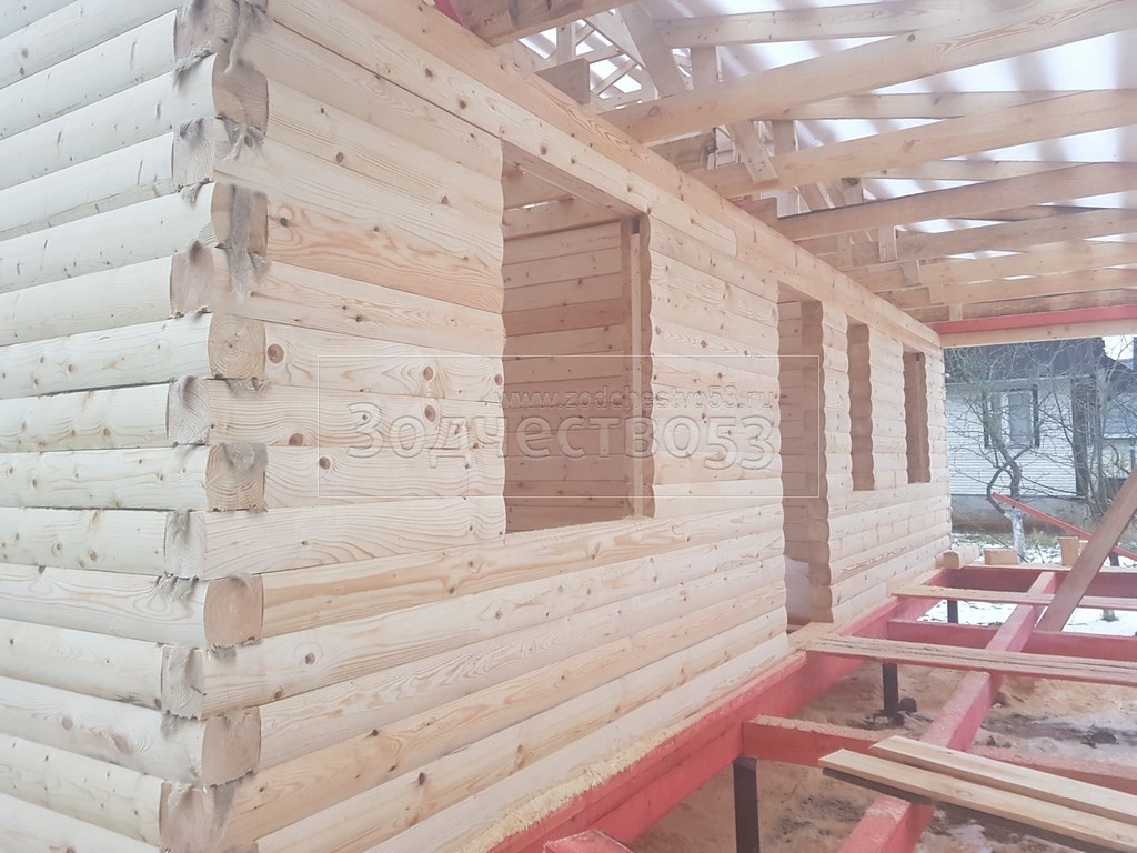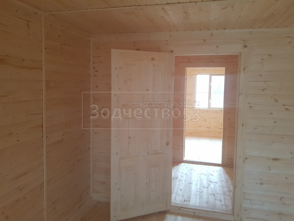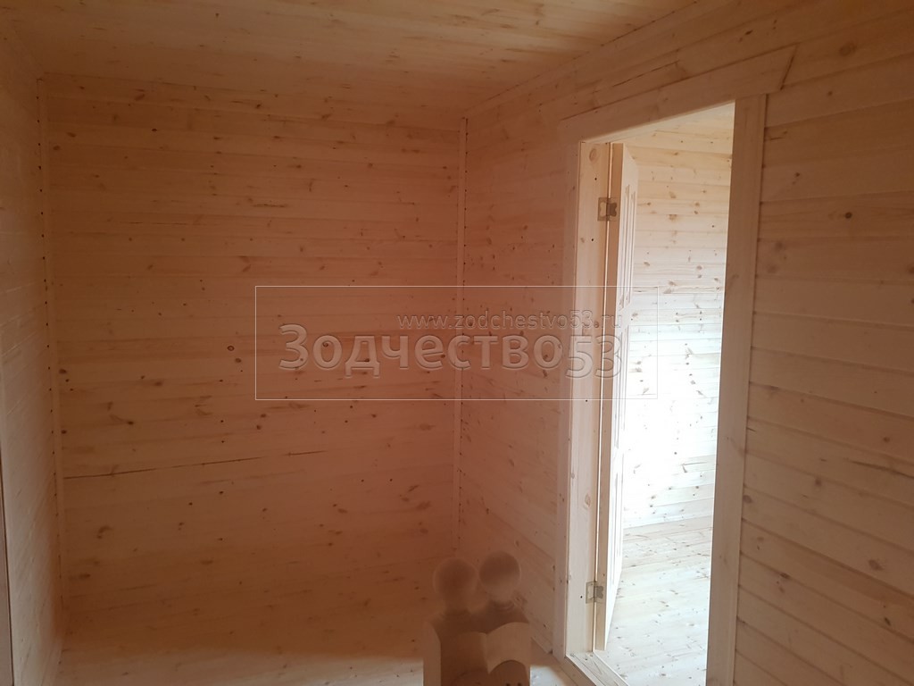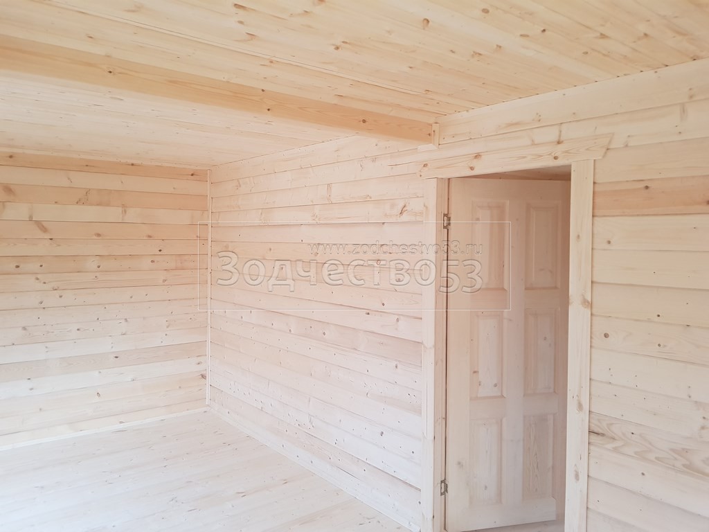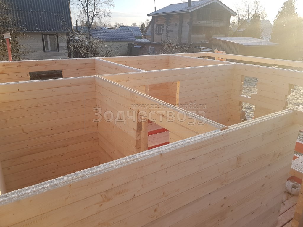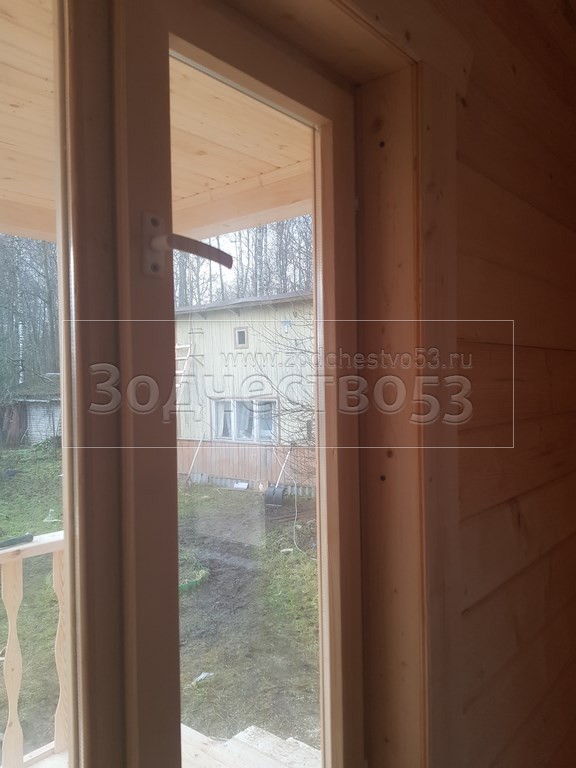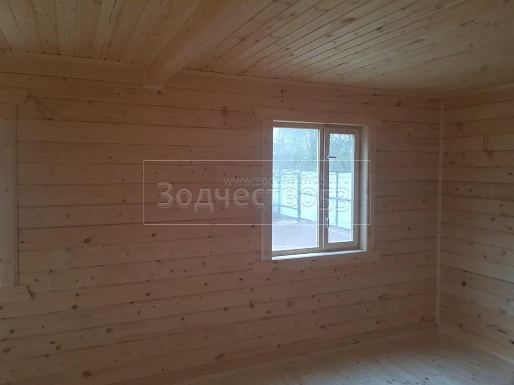 Дом общими размерами 8.0*9.0 (6.0*9.0 из профилированного бруса 140*140, под ломаной крышей и 2.0*9.0 открытая терраса под отдельной односкатной крышей). Построен: Ленинградская область, Кировский район, СНТ Восход 4, улица Детская 1.