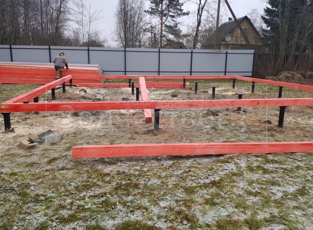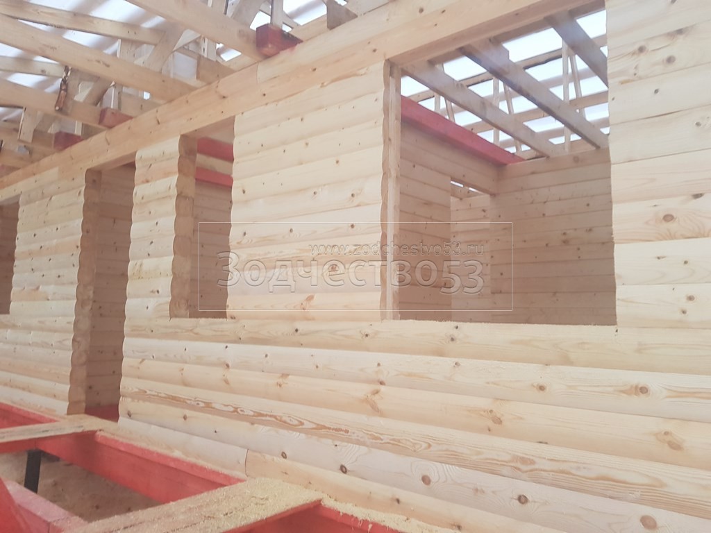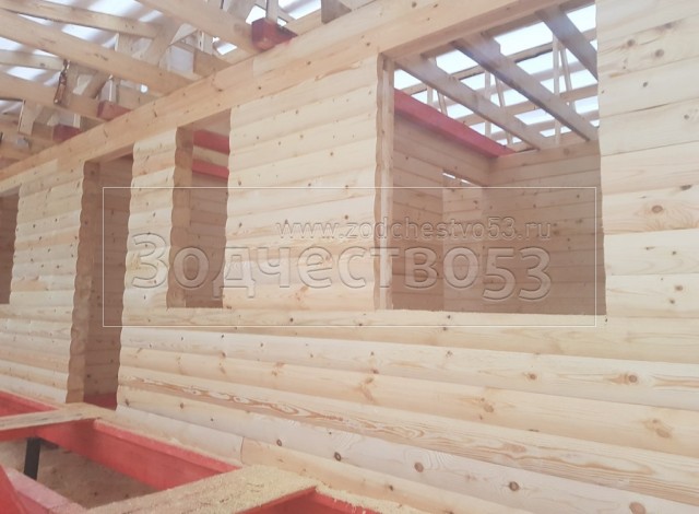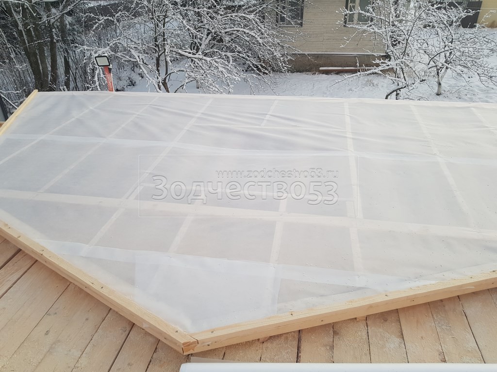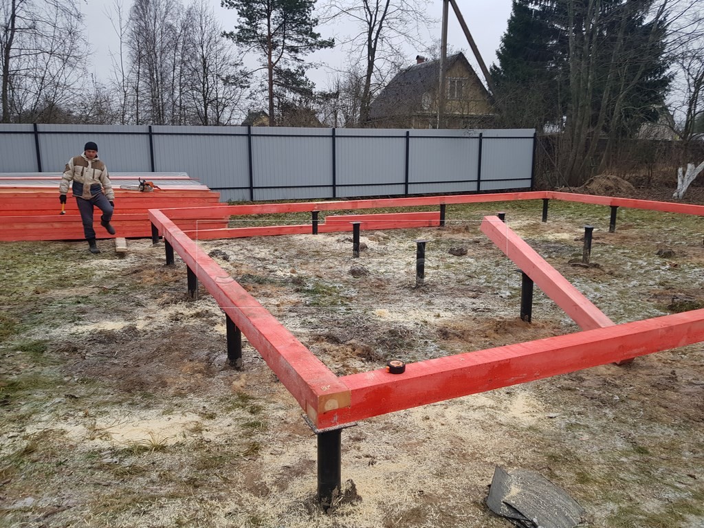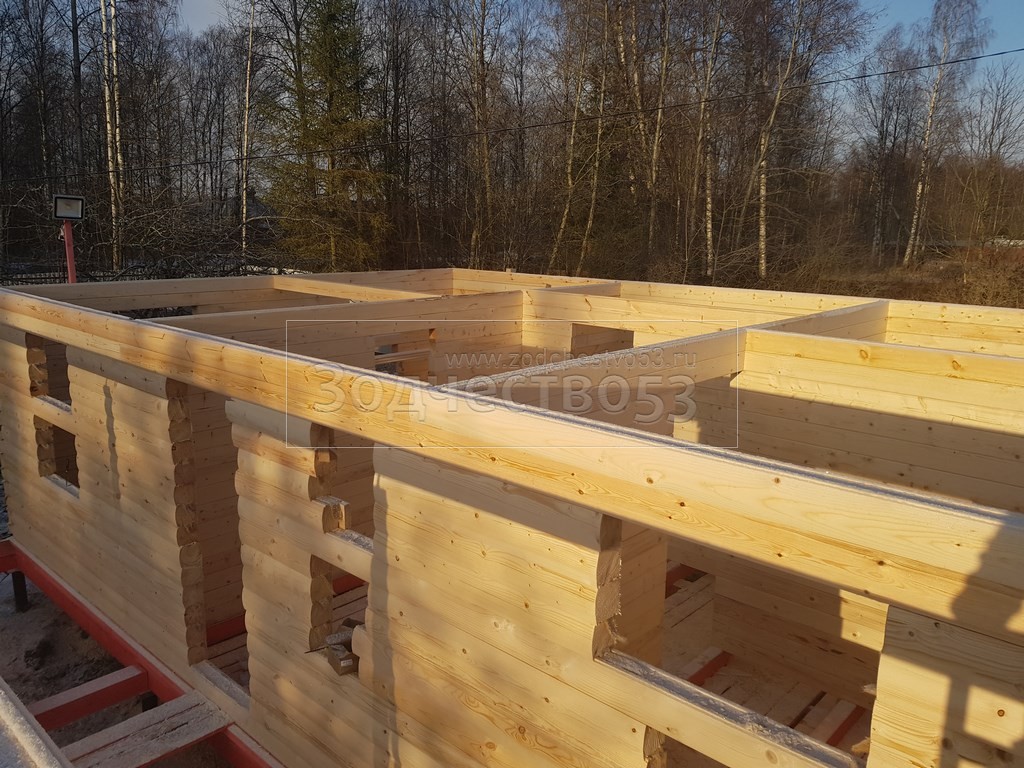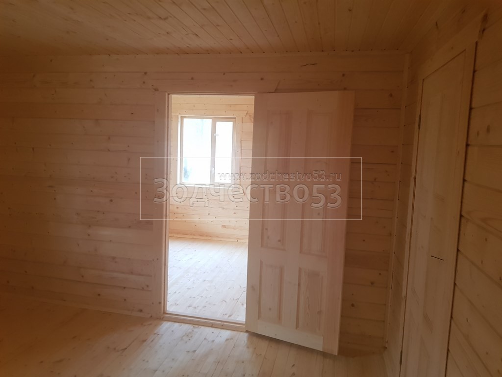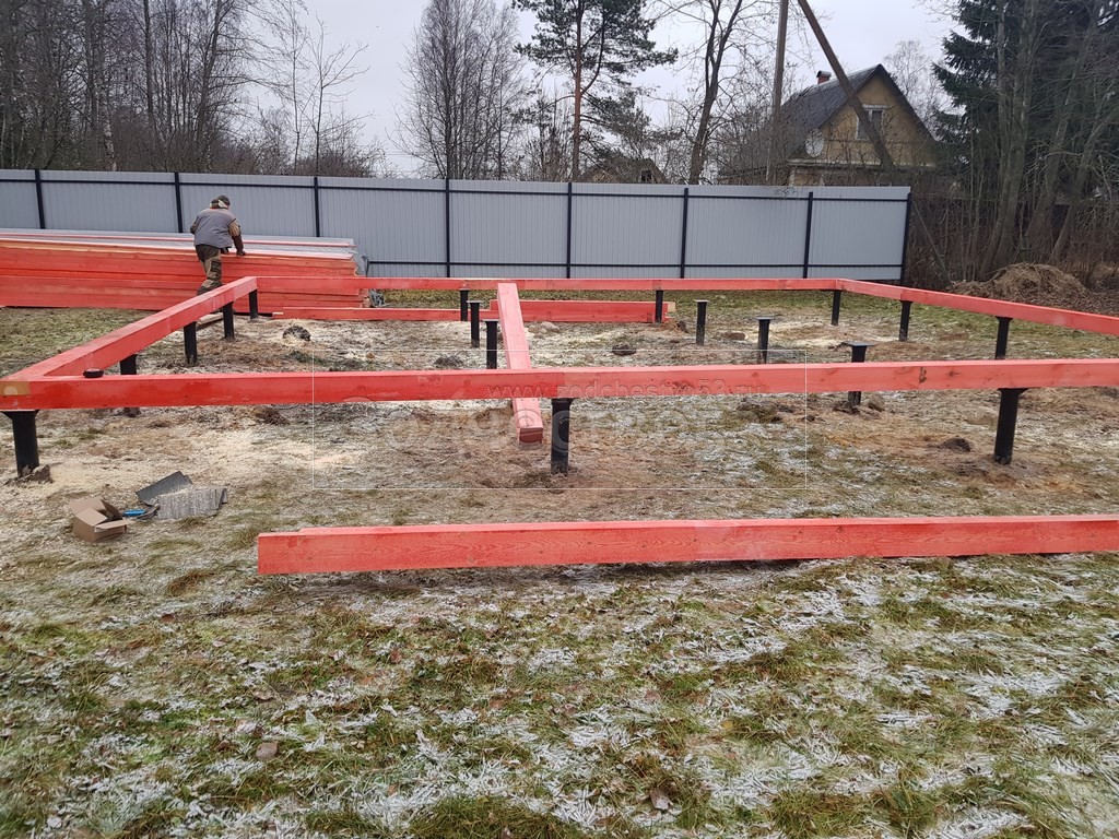 Дом общими размерами 8.0*9.0 (6.0*9.0 из профилированного бруса 140*140, под ломаной крышей и 2.0*9.0 открытая терраса под отдельной односкатной крышей). Построен: Ленинградская область, Кировский район, СНТ Восход 4, улица Детская 1.