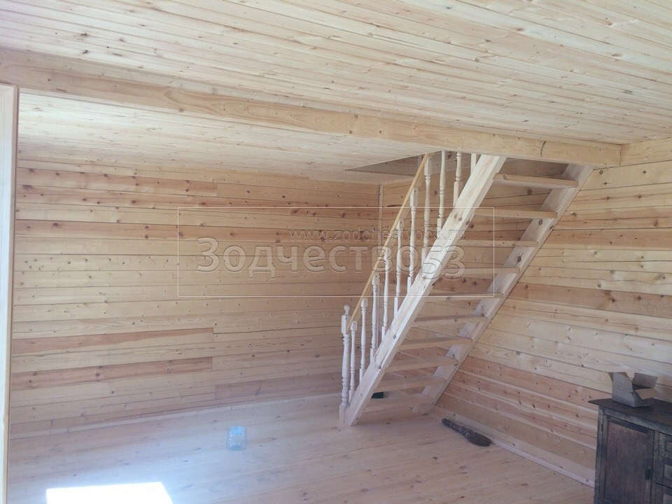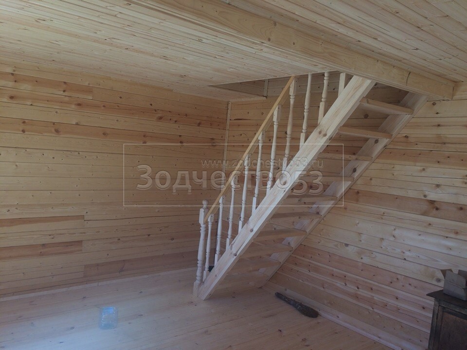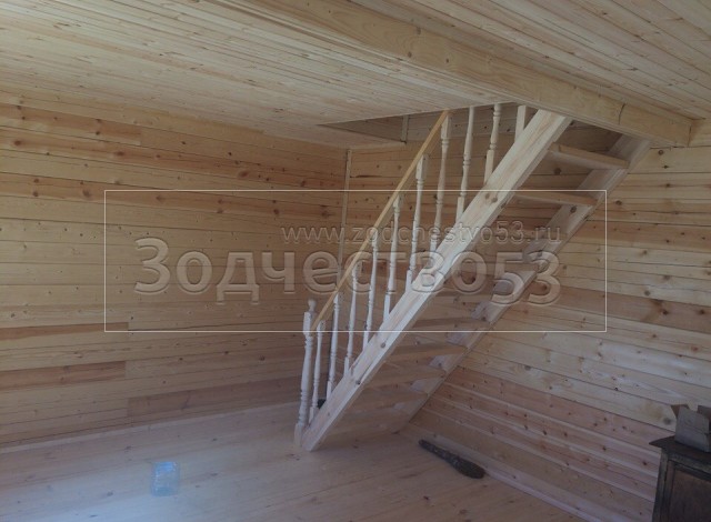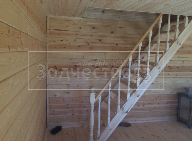 - одномаршевая лестница с точеными балясинами, стартовыми столбами и перилами
