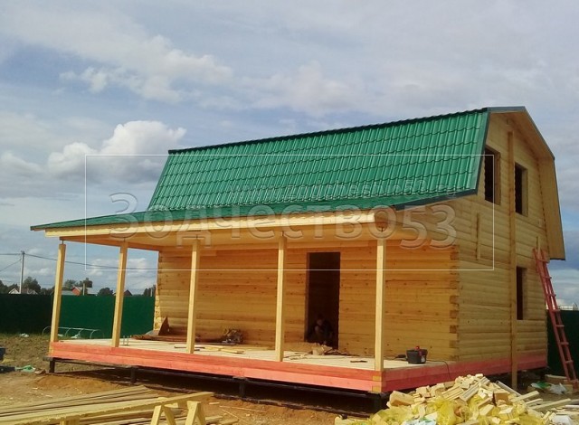 Дом общими размерами 9.0*8.0 (6.0*8.0 из профилированного бруса 140*140 камерной сушки под ломанной крышей и открытая терраса 3.0*8.0 под односкатной отдельной крышей.Объект построен: Московская обл, Щелковский р-он, с/п Трубинское, тер. Назимиха -Парк, ул. 3-я Парковая З У -19.