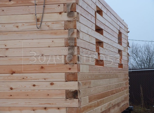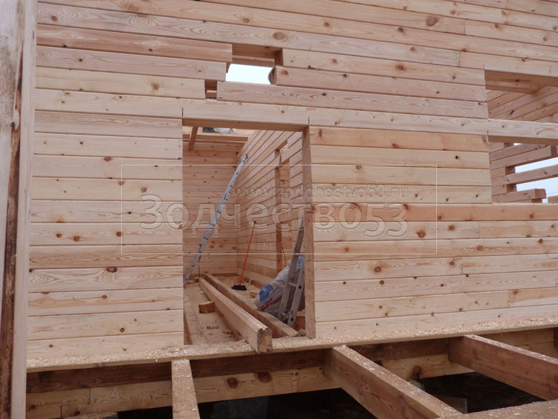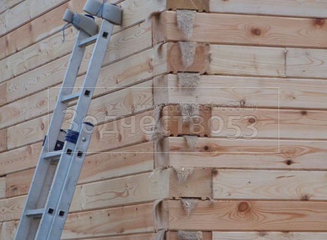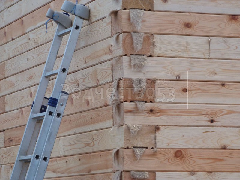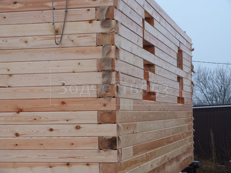 - Перегородки из профилированого бруса 100×150 с проложкой льнополотна, на нагеля в тёплый угол.