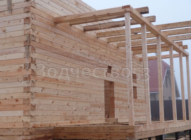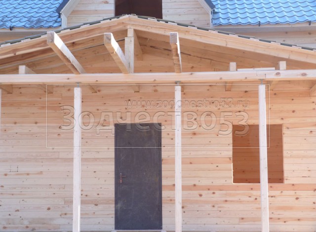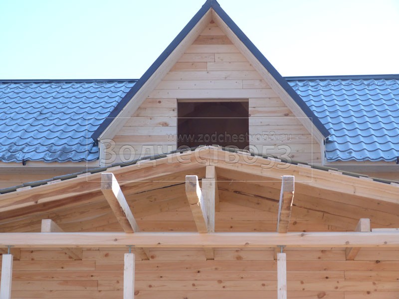 1.20-1.25, выгородка комнат по высоте 2.50. - Фронтоны из профилированного бруса 200×150, высотой