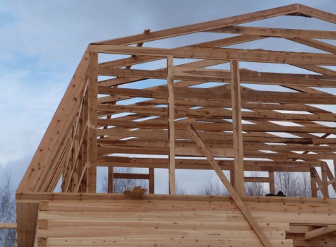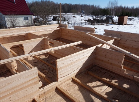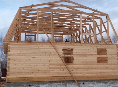 • Стропила: межэтажные перекрытия 100×150 через 90см, стропильная система 40×150 через 90 см, выгородка комнат 40×150.