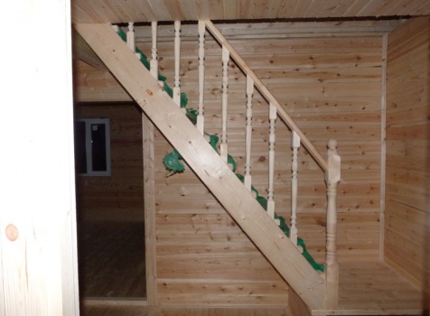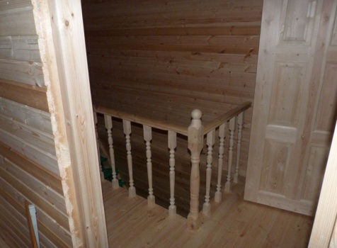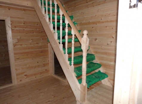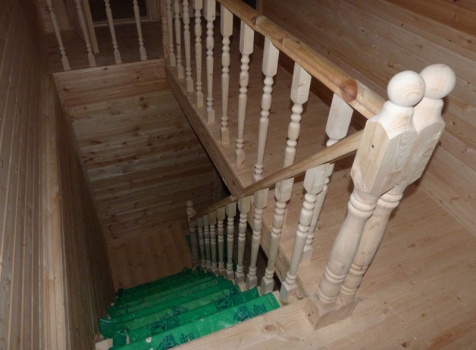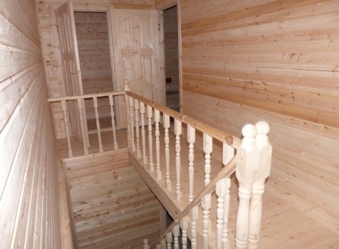• Лестница: двухмаршевая с точёными балясинами, стартовыми столбами и перилами.