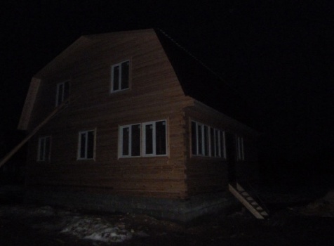 Дом из профилированного бруса 150×150 под ломанной крышей размерами 9.0×9.0. Построен: Владимирская область, Александровский район, Андреевский Сельский Совет