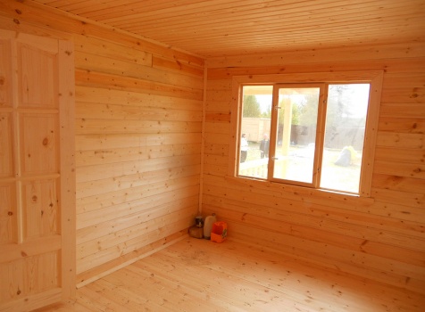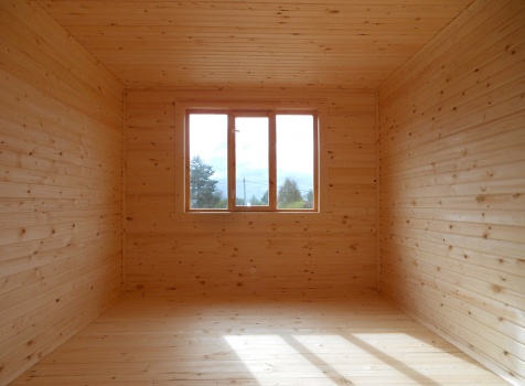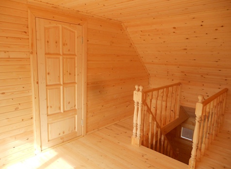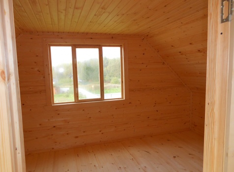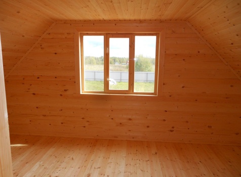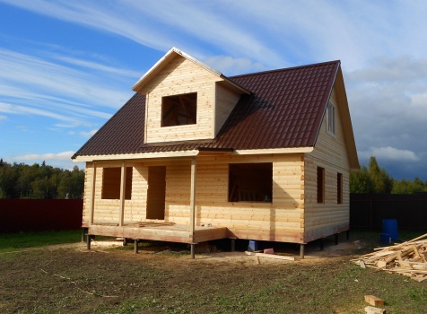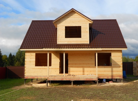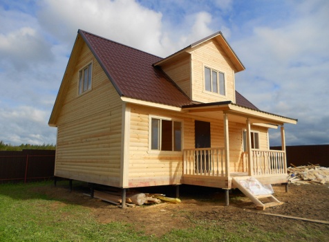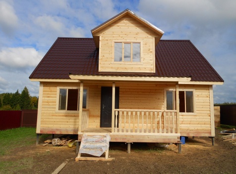 Дом общими размерами 9,0×9,0 (7,0×9,0 дом и терраса 2,0×4,0) из профилированного бруса 100×150. Построен в Московской области, Волоколамский р-н