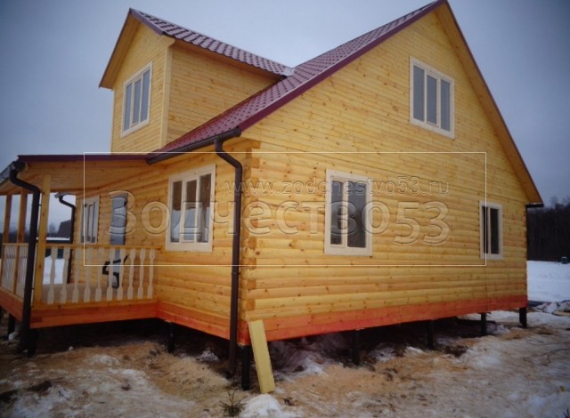 - терраса 2,0х4,0 с резными балясинами, строгаными столбами 100х100 с установкой усадочных болтов