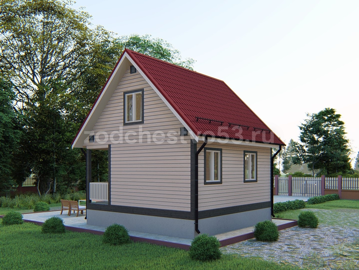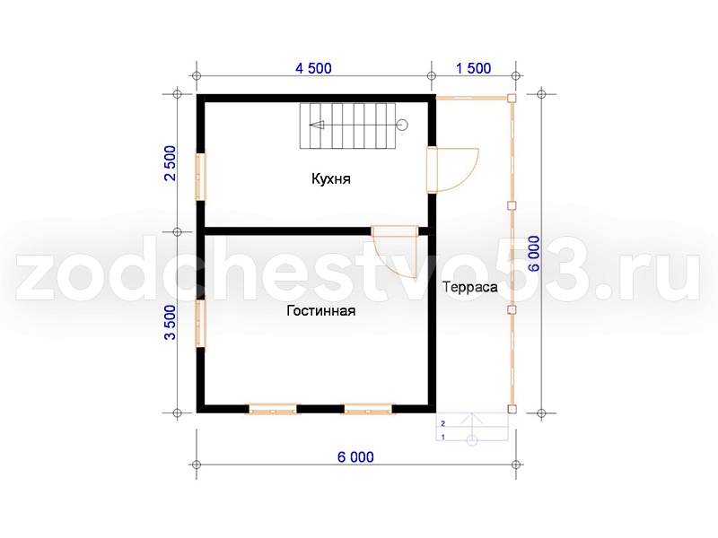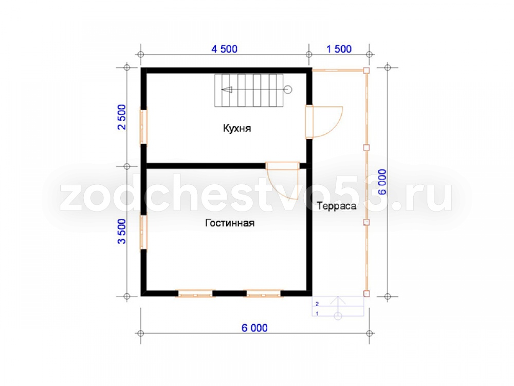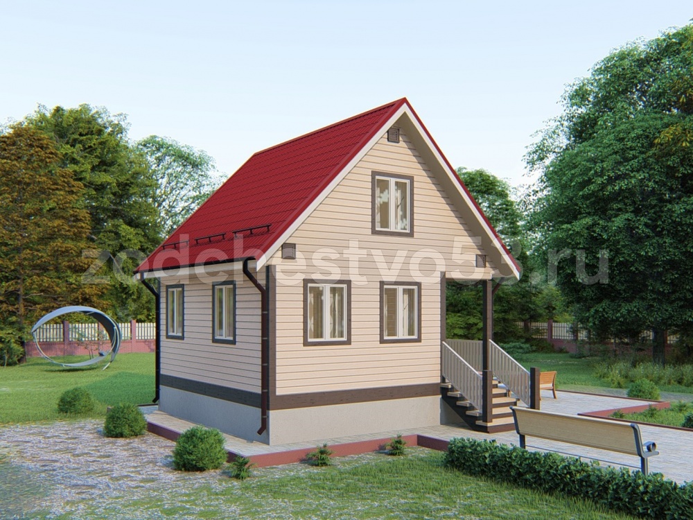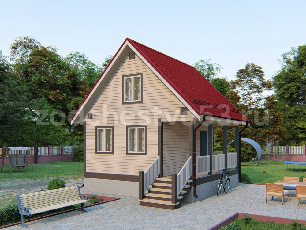 Проект Д-12. Дом из сухого бруса 6х6 м.