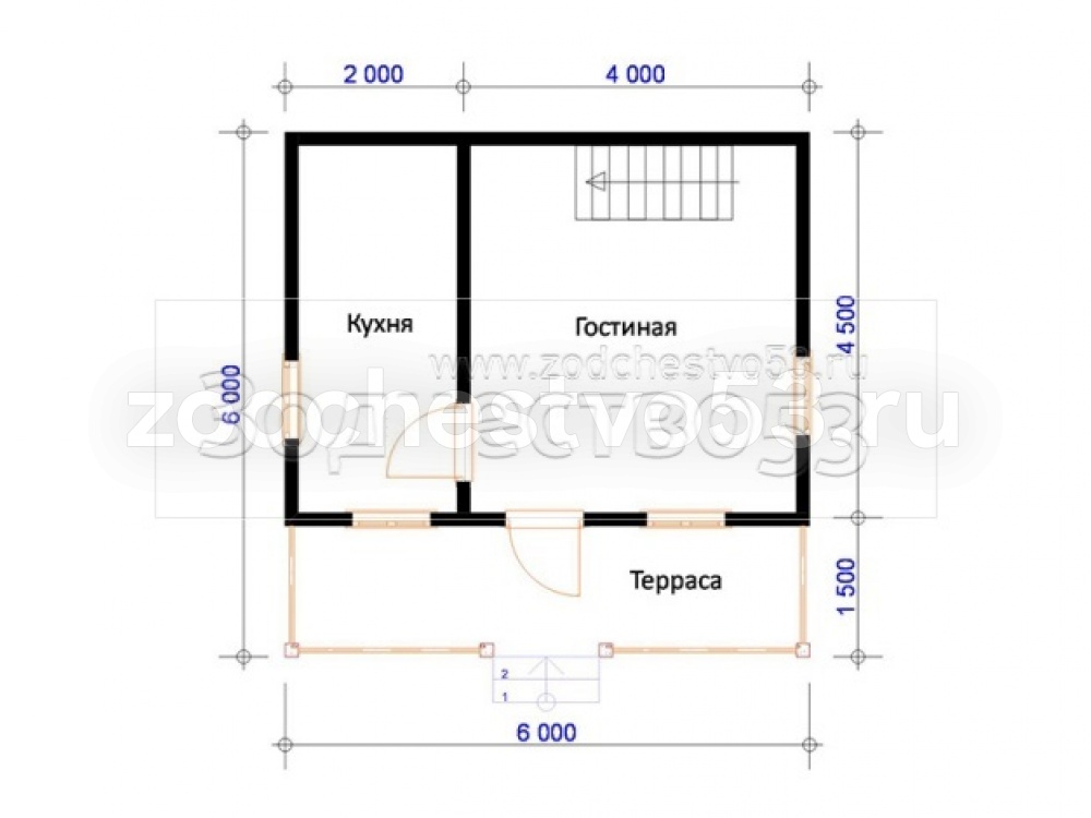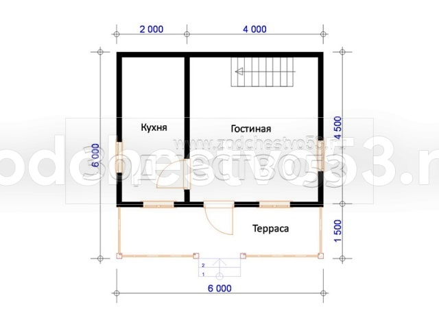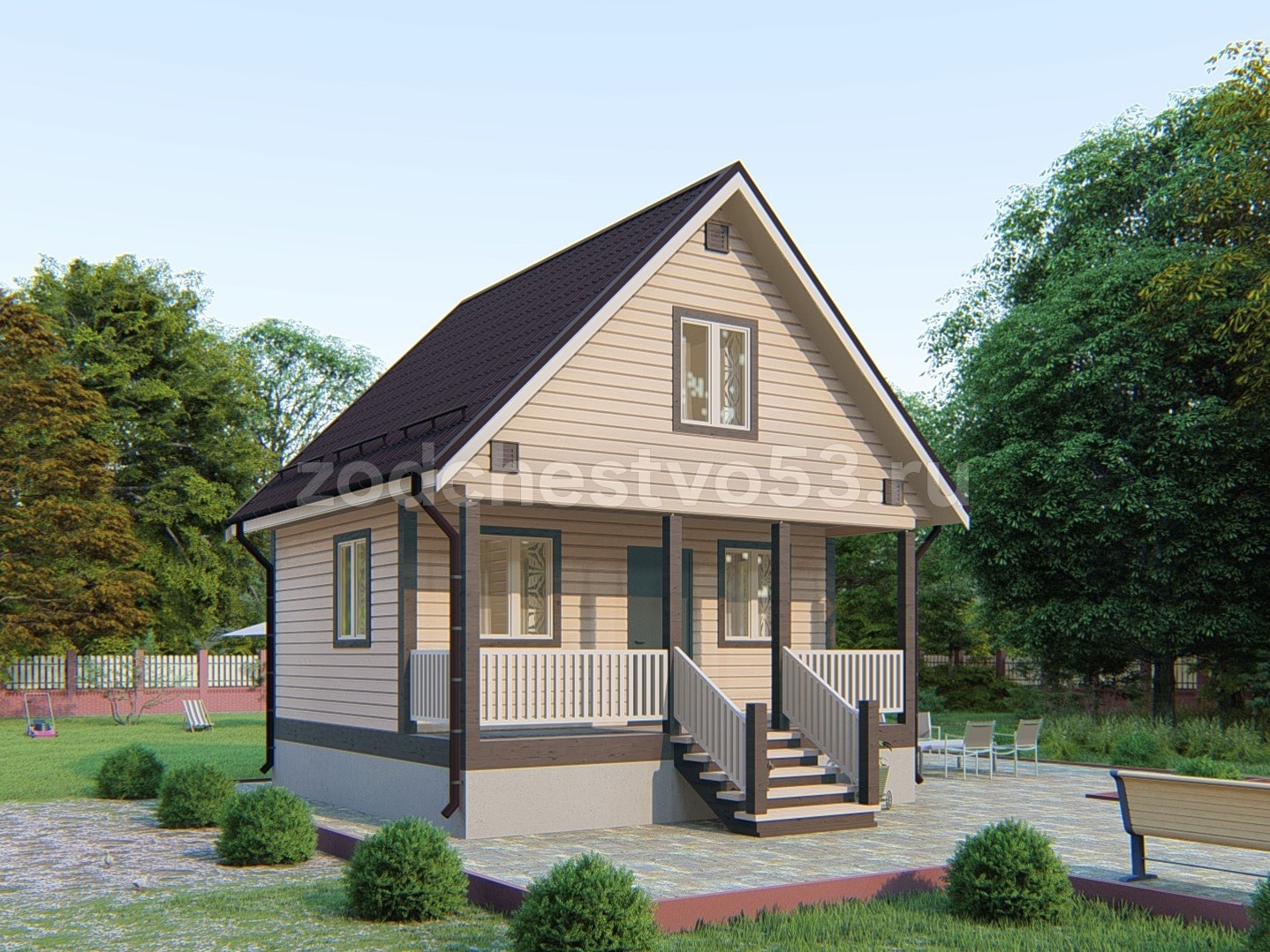 Проект Д-13. Дом из сухого бруса 6х6 м.