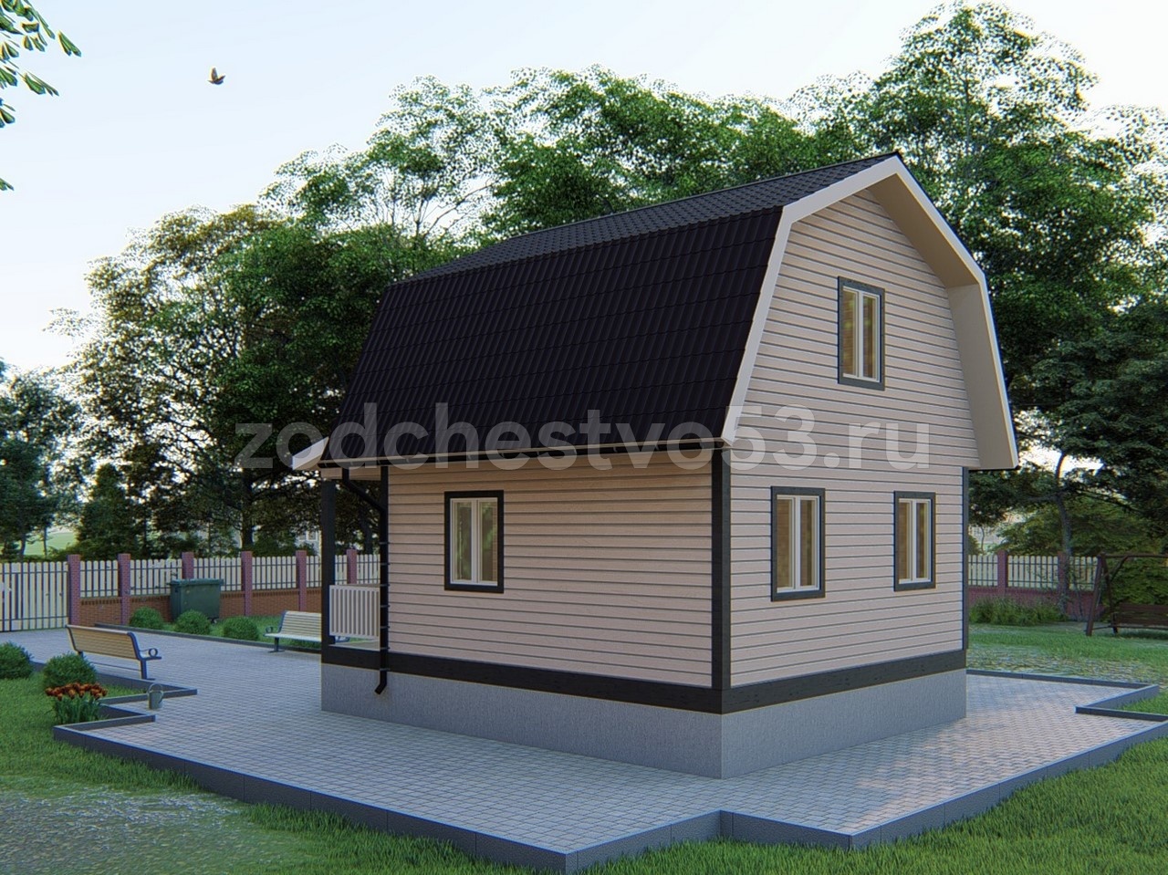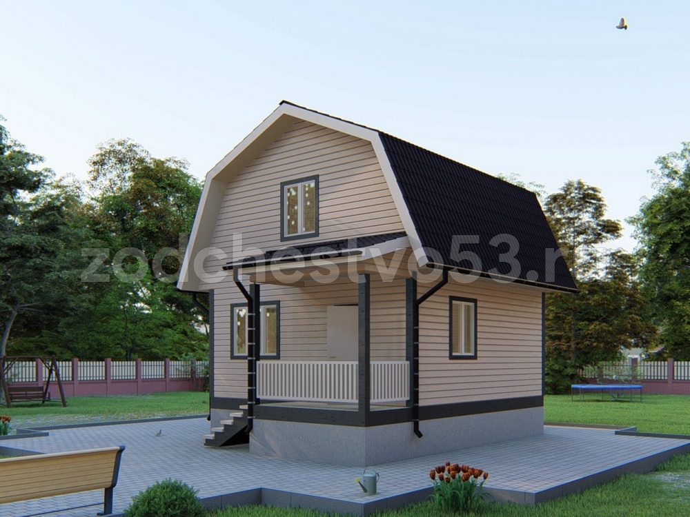 Проект Д-166. Дом из сухого бруса 6х7,5 м.