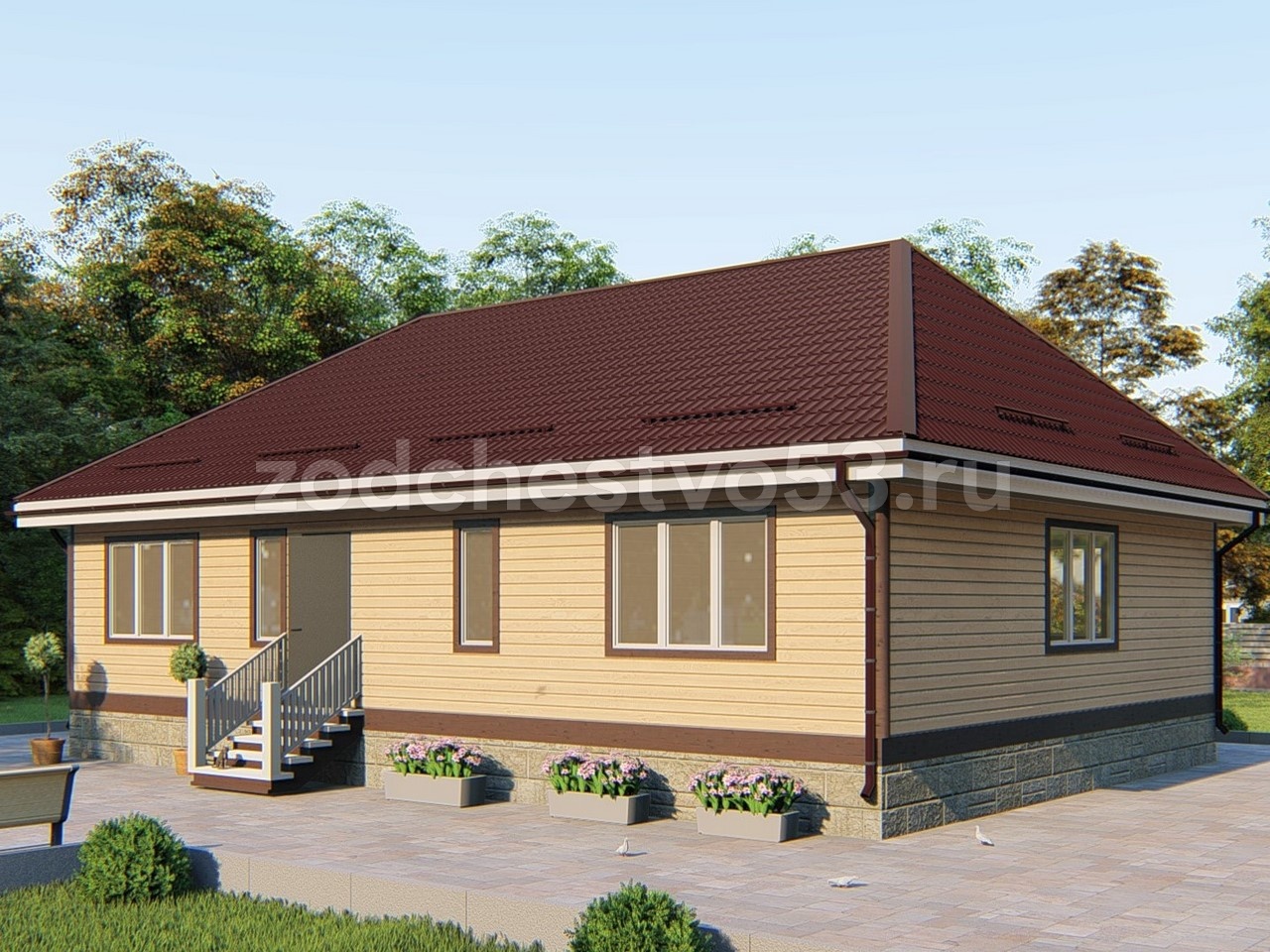 Фронтоны Обшиваются сухой имитацией бруса 16×140