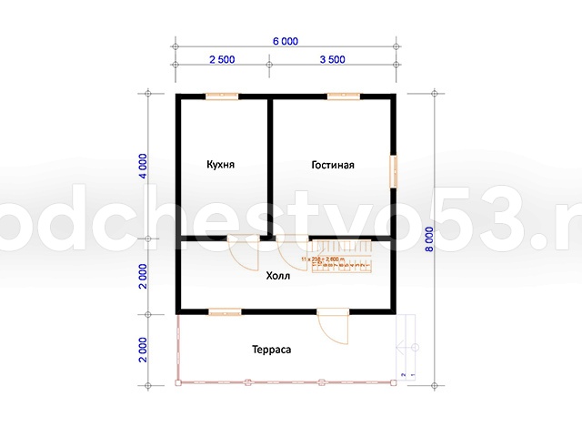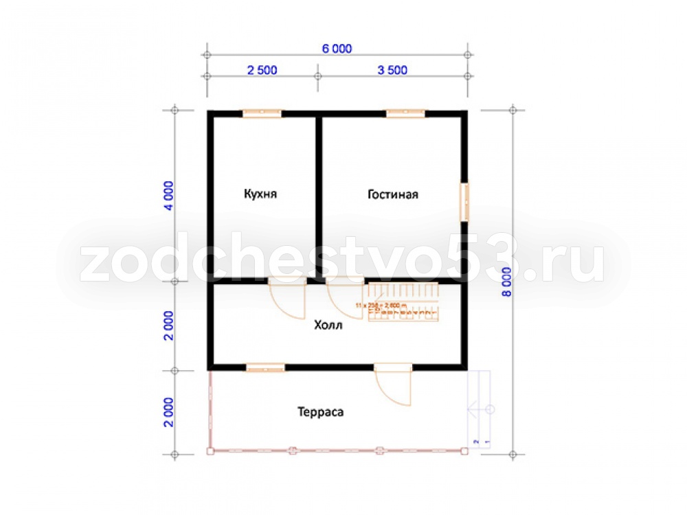 Проект Д-18. Дом из сухого бруса 6х8 м.
