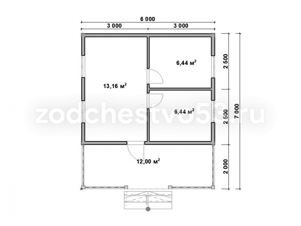 Проект Д-182. Дом из сухого бруса 6х7 м.