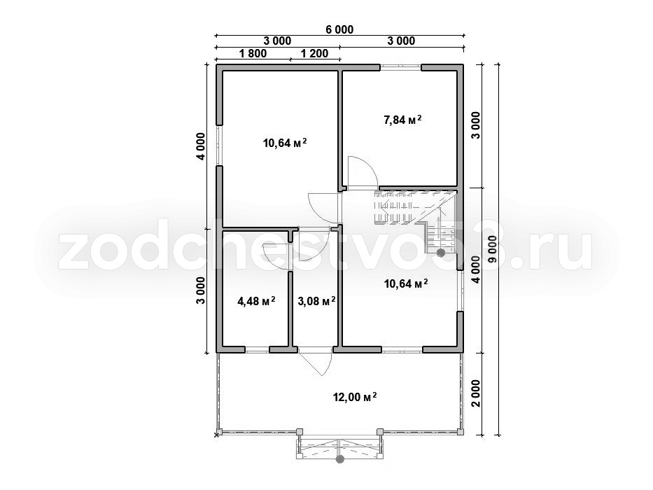 Проект Д-192. Дом из сухого бруса 6х9 м.