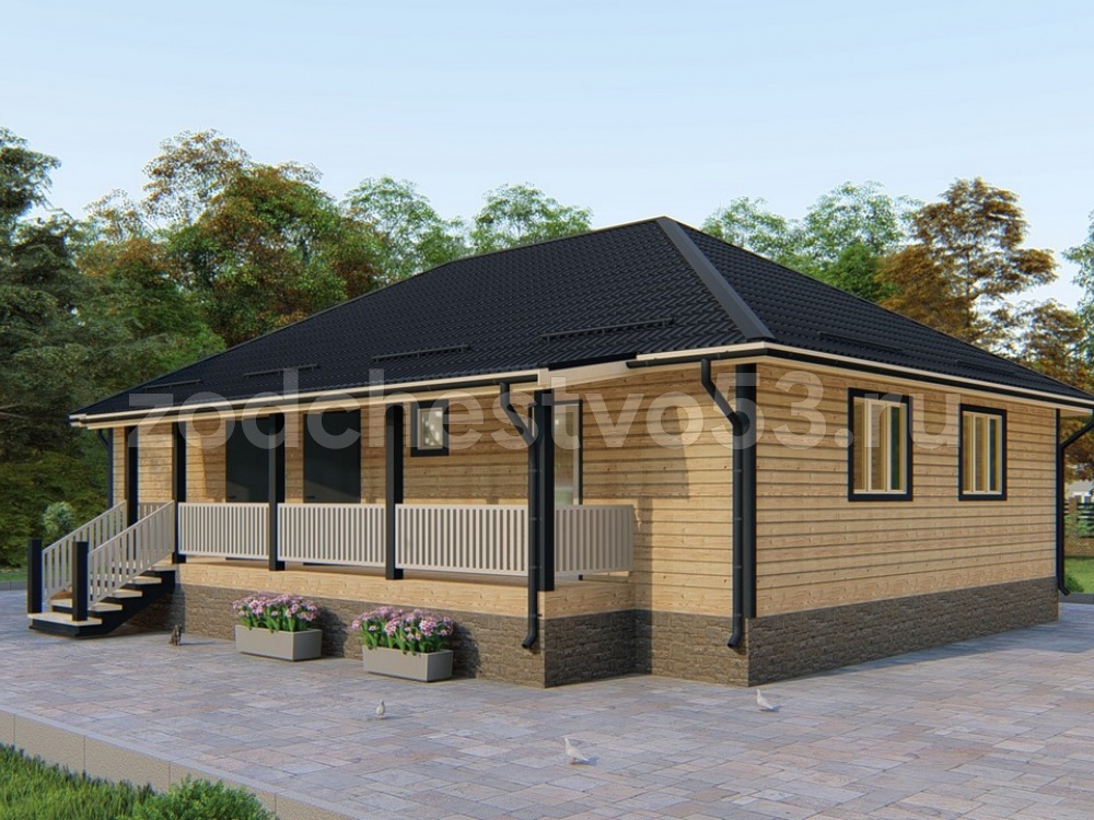 Проект Д-19. Дом из сухого бруса 9х14 м.