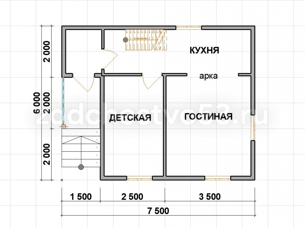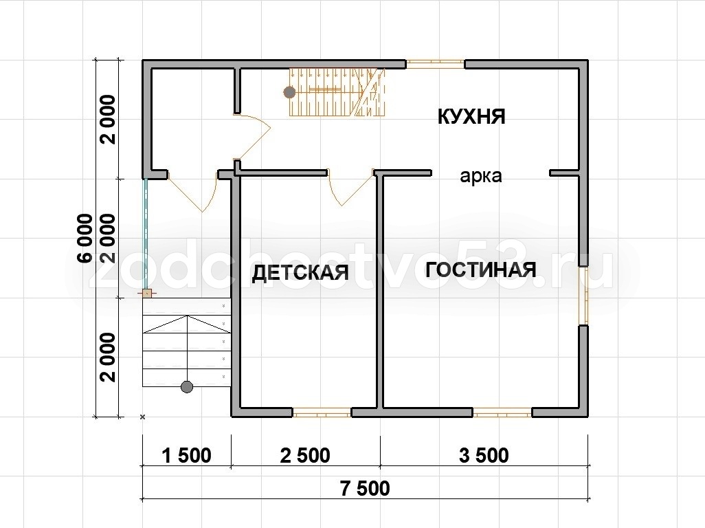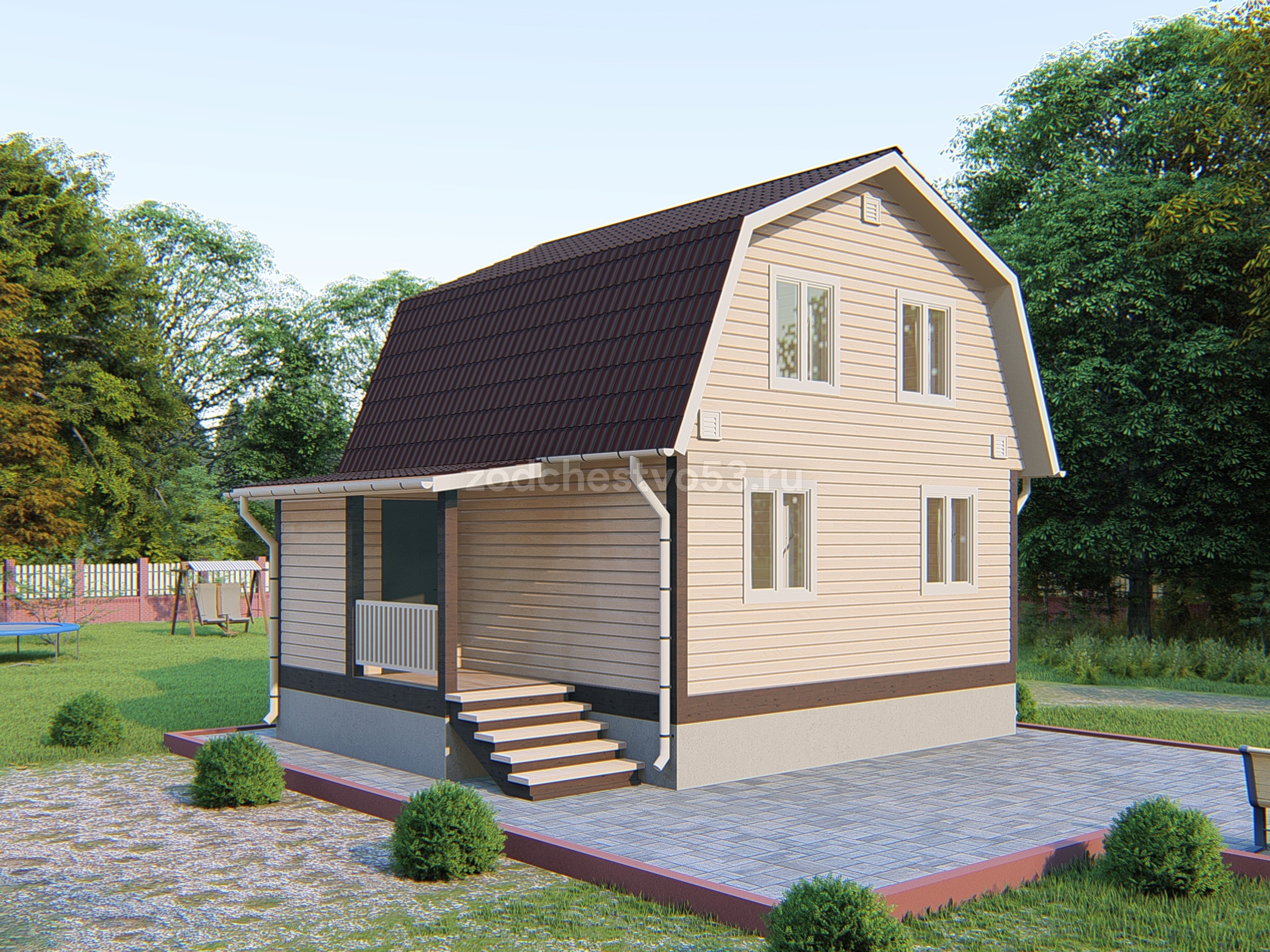 Проект Д-22. Дом из сухого бруса 6х7,5 м.