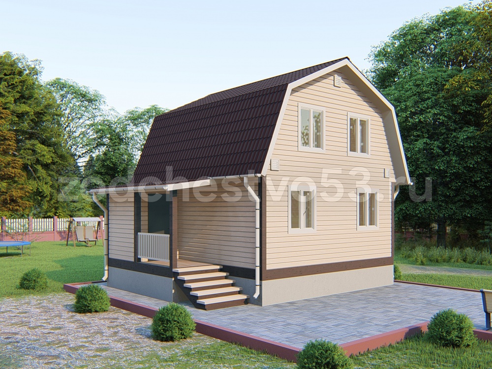 Проект Д-22. Дом из сухого бруса 6х7,5 м.