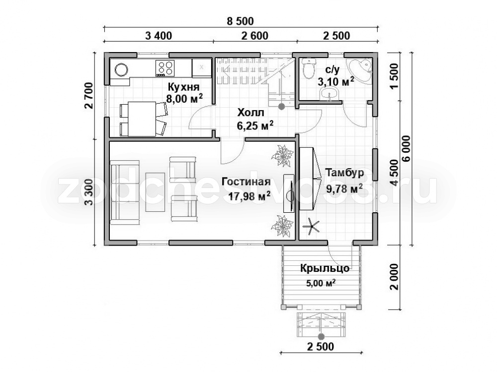 6х8,5 м.