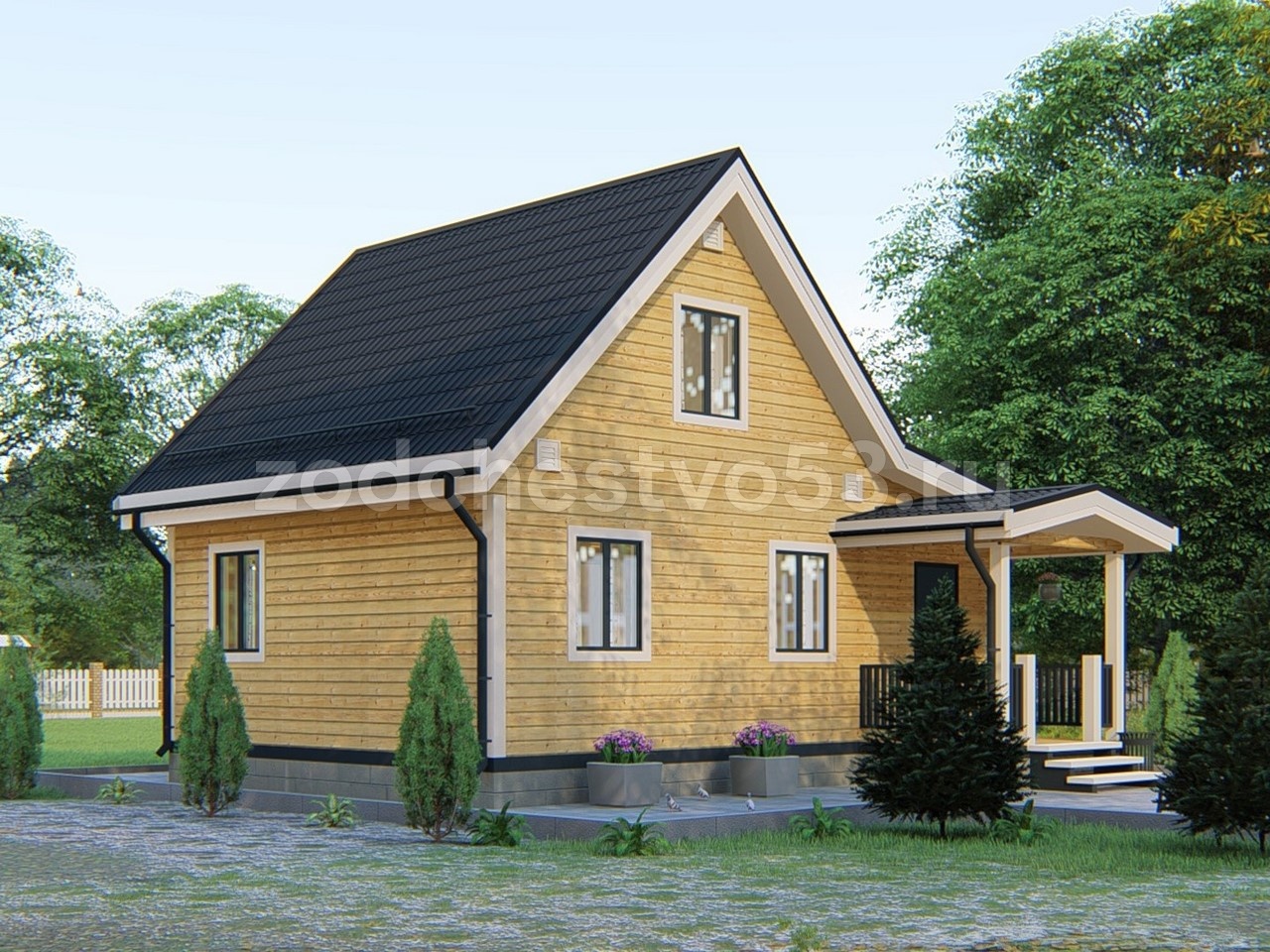 Проект Д-40. Дом из сухого бруса 6х8,5 м.