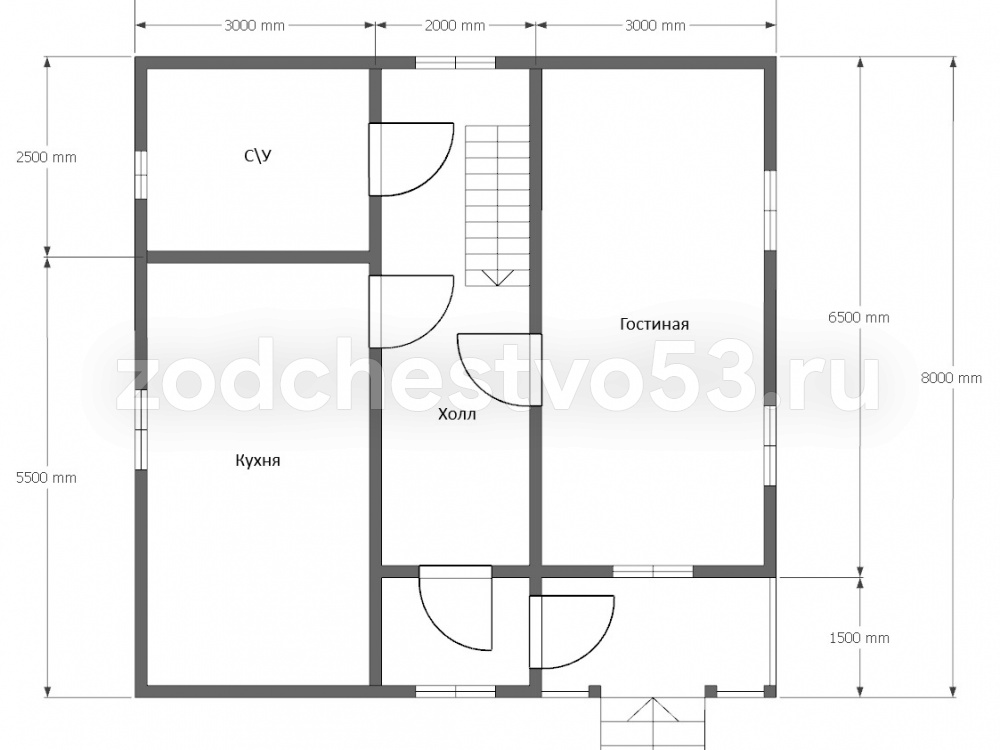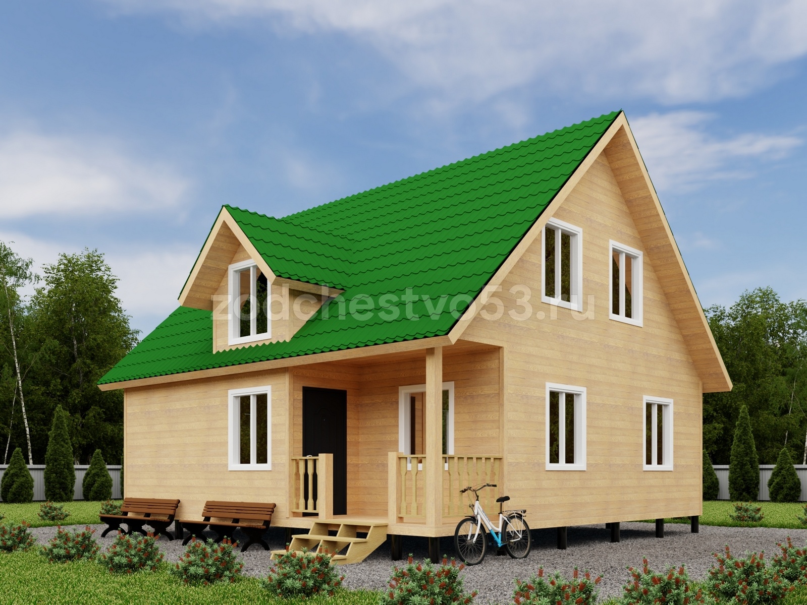 Проект Д-62. Дом из сухого бруса 8х8 м.