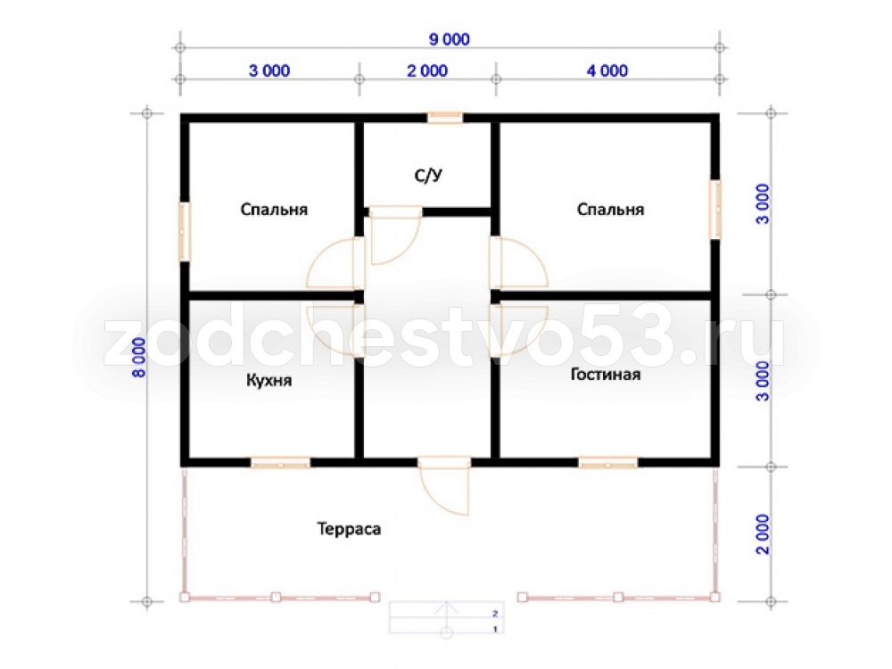 Проект Д-79. Дом из сухого бруса 8х9 м.