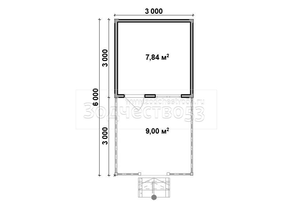Окна: 1х1,2 м., 0,6х1,2 м., 0,6х0,6 м. (по проекту) |