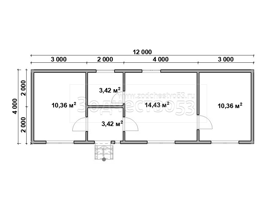 Окна: 1х1,2 м., 0,6х1,2 м., 0,6х0,6 м. (по проекту)