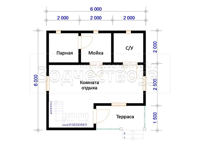 Моечная и комната отдыха Перегородки из проф. бруса (прямой)