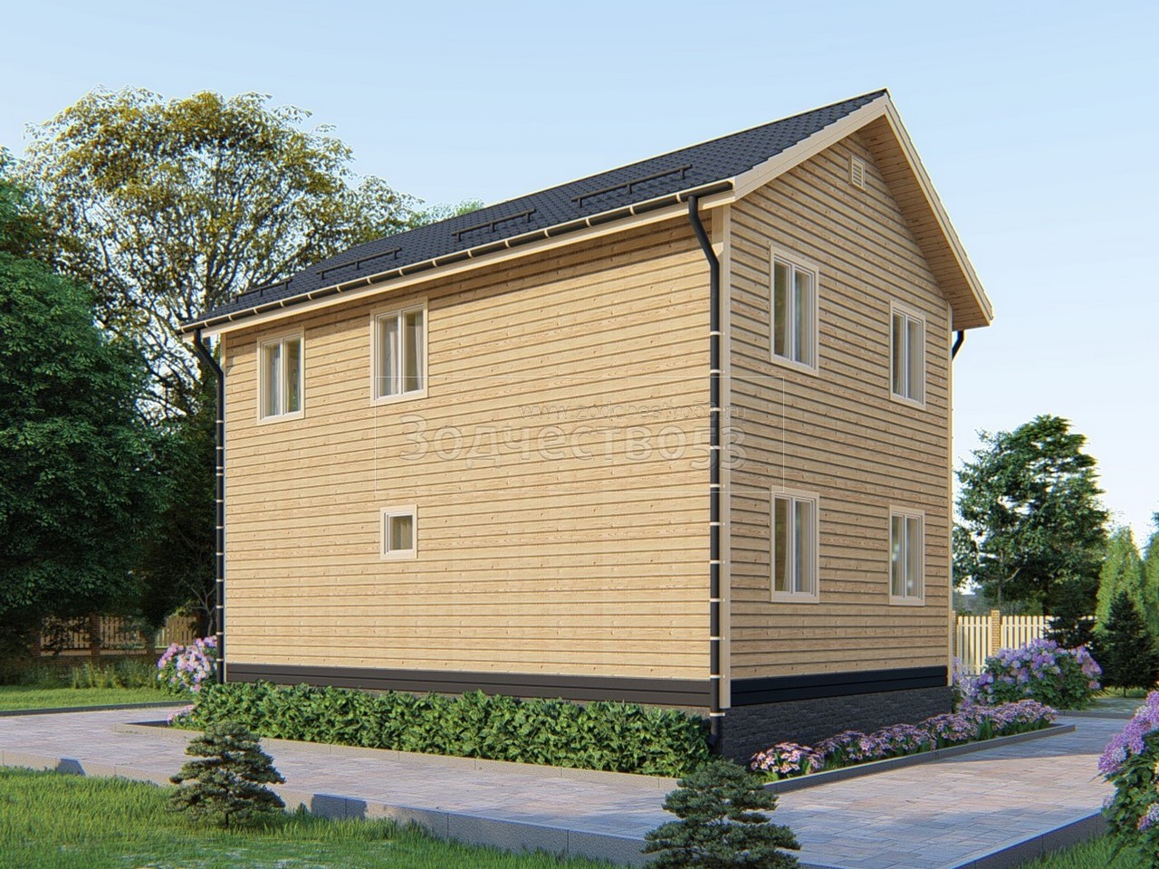 Отделка фронтонов и стен блокхаусом.