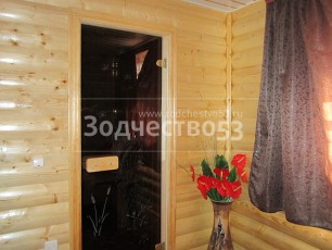 Двери в моечном отделении и парной по классической традиции – клиновые. Это надежная конструкция, которая зарекомендовала себя на протяжении многих лет.