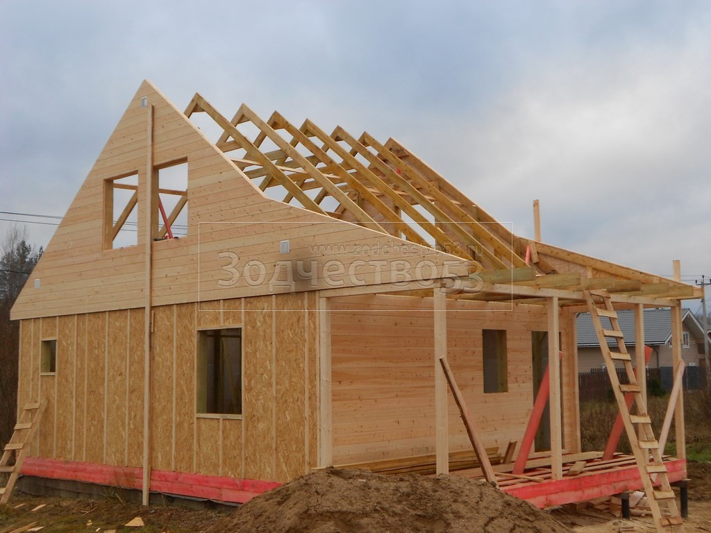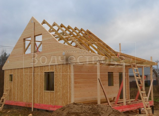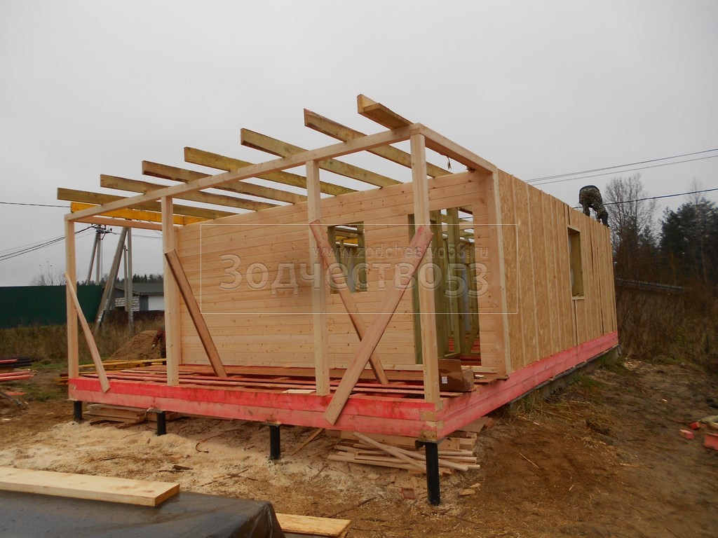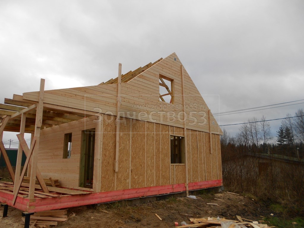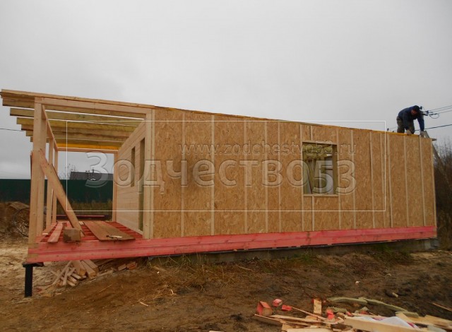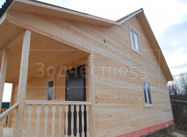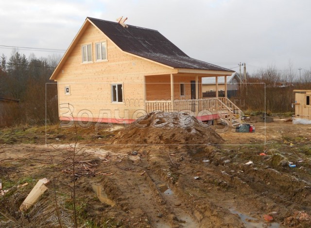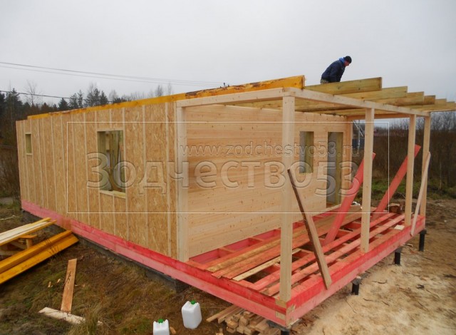 Дом-баня общими размерами 6×10 м. (6×8 каркасно-щитовая дом-баня, и открытая терраса 2×6) построена в Ленинградской обл., Кировский р-н, ЗАО «Мгинское»