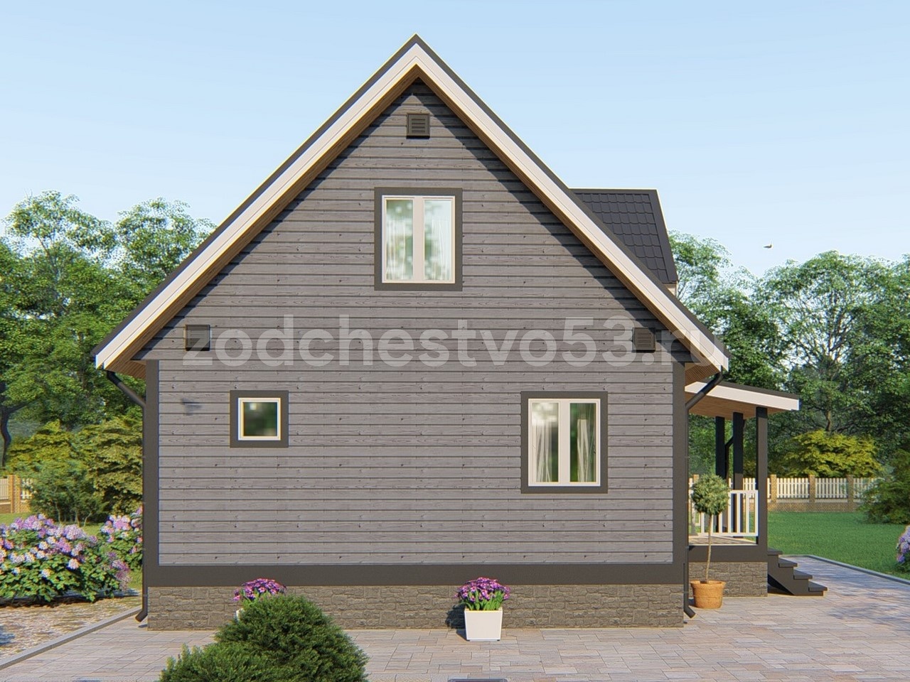 Фронтоны Обшиваются сухой имитацией бруса 16×140